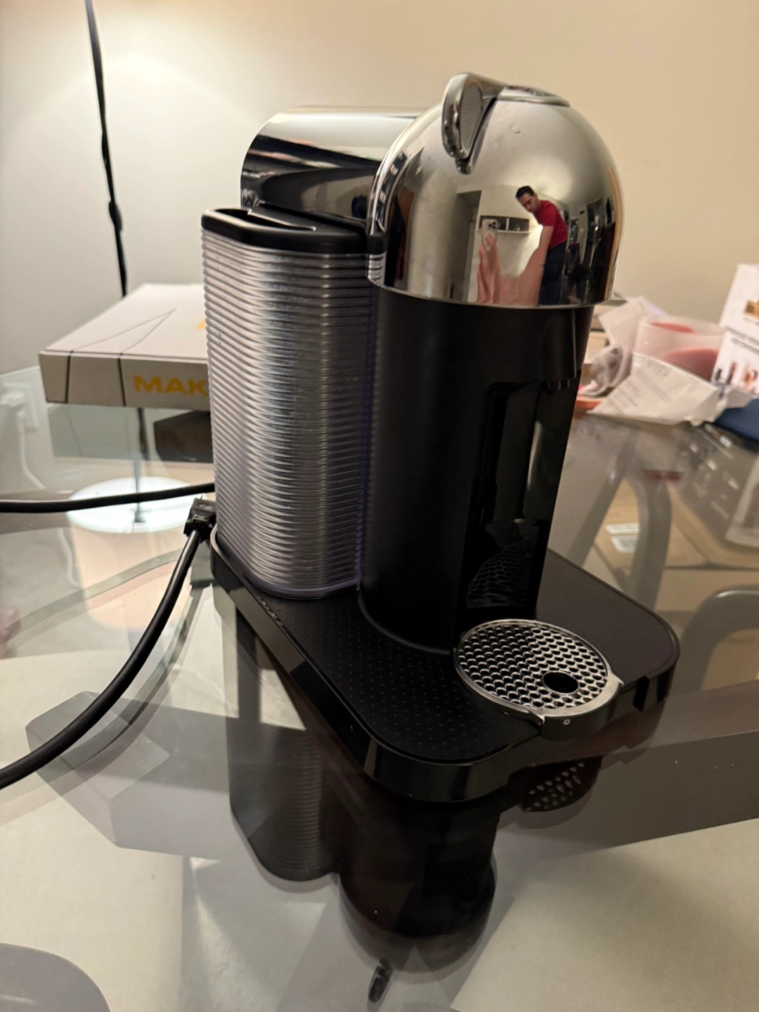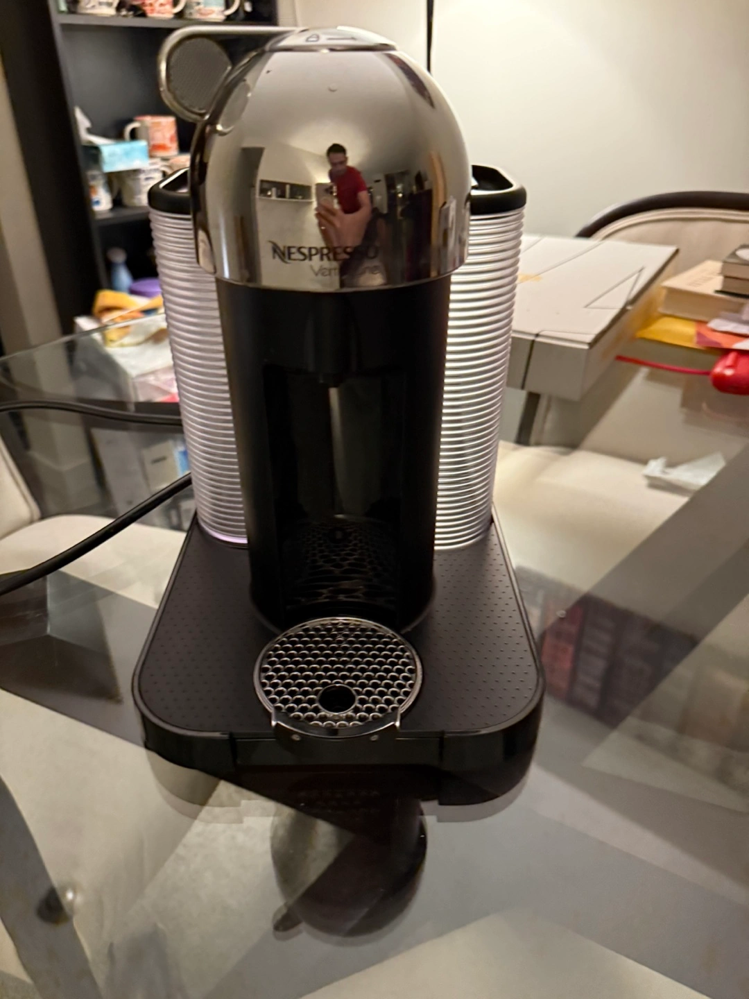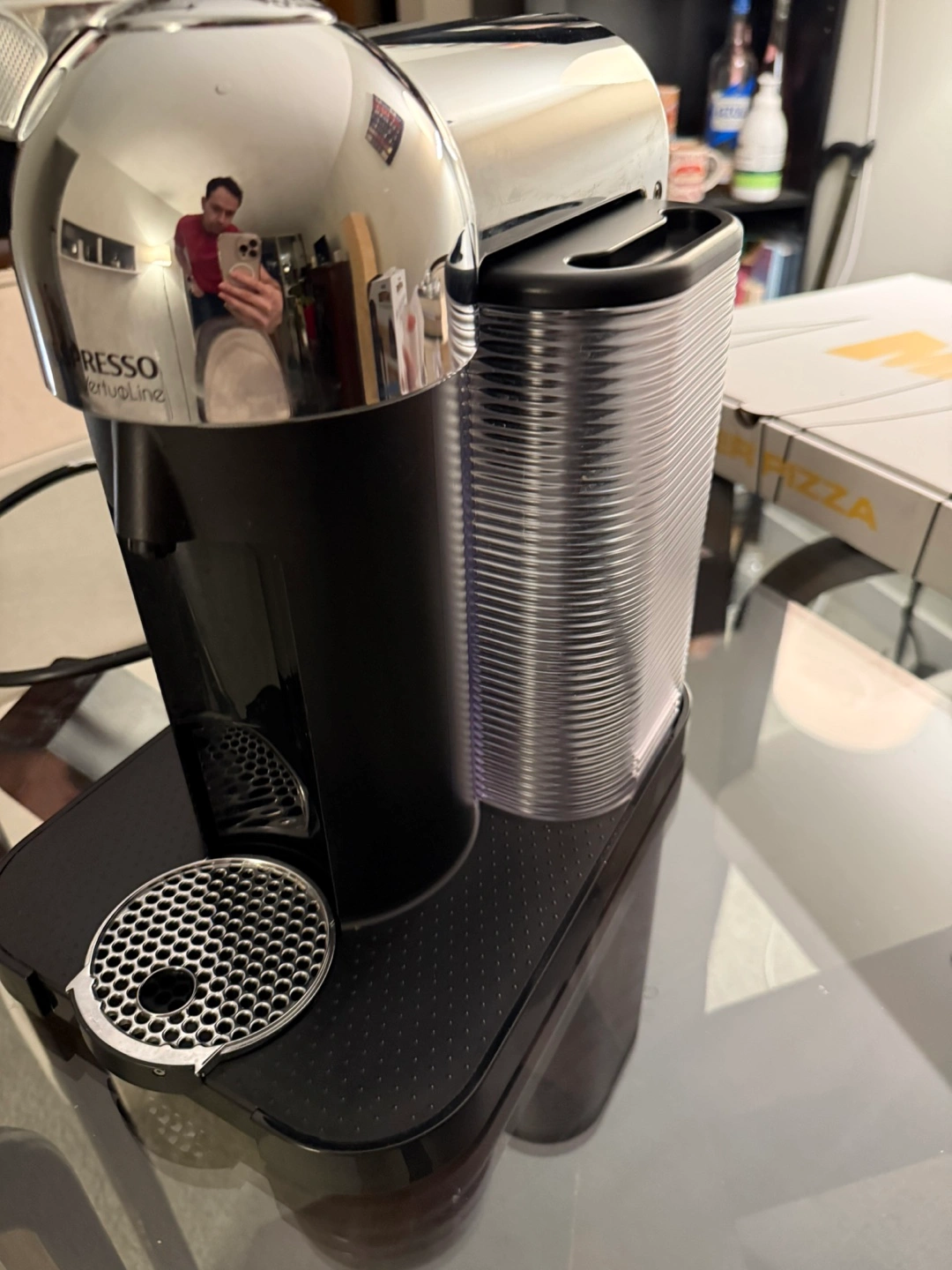 133Sleek and stylish coffee machine. Makes delicious coffee. Includes used capsule container. Excellent condition.