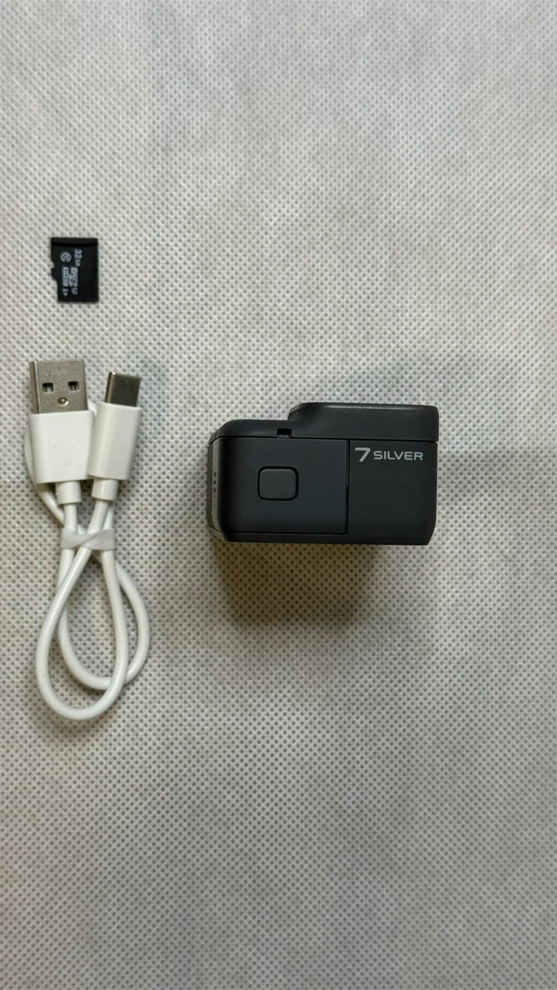 Capture your adventures with this GoPro HERO7 Silver. It's a compact action camera perfect for on-the-go filming. Includes a USB-C charging cable and a 32GB microSD card.