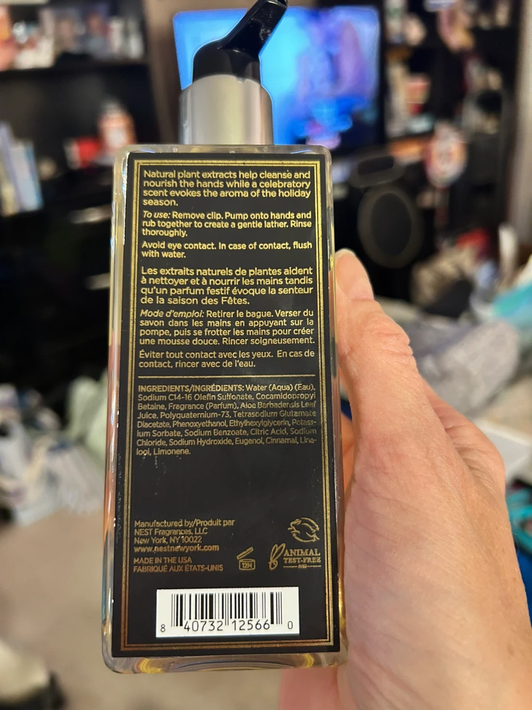 189Selling a bottle of NEST New York Holiday Liquid Soap. It comes in a 10 fl oz (300 ml) size. Natural plant extracts help cleanse and nourish the hands while a celebratory aroma evokes the holiday season