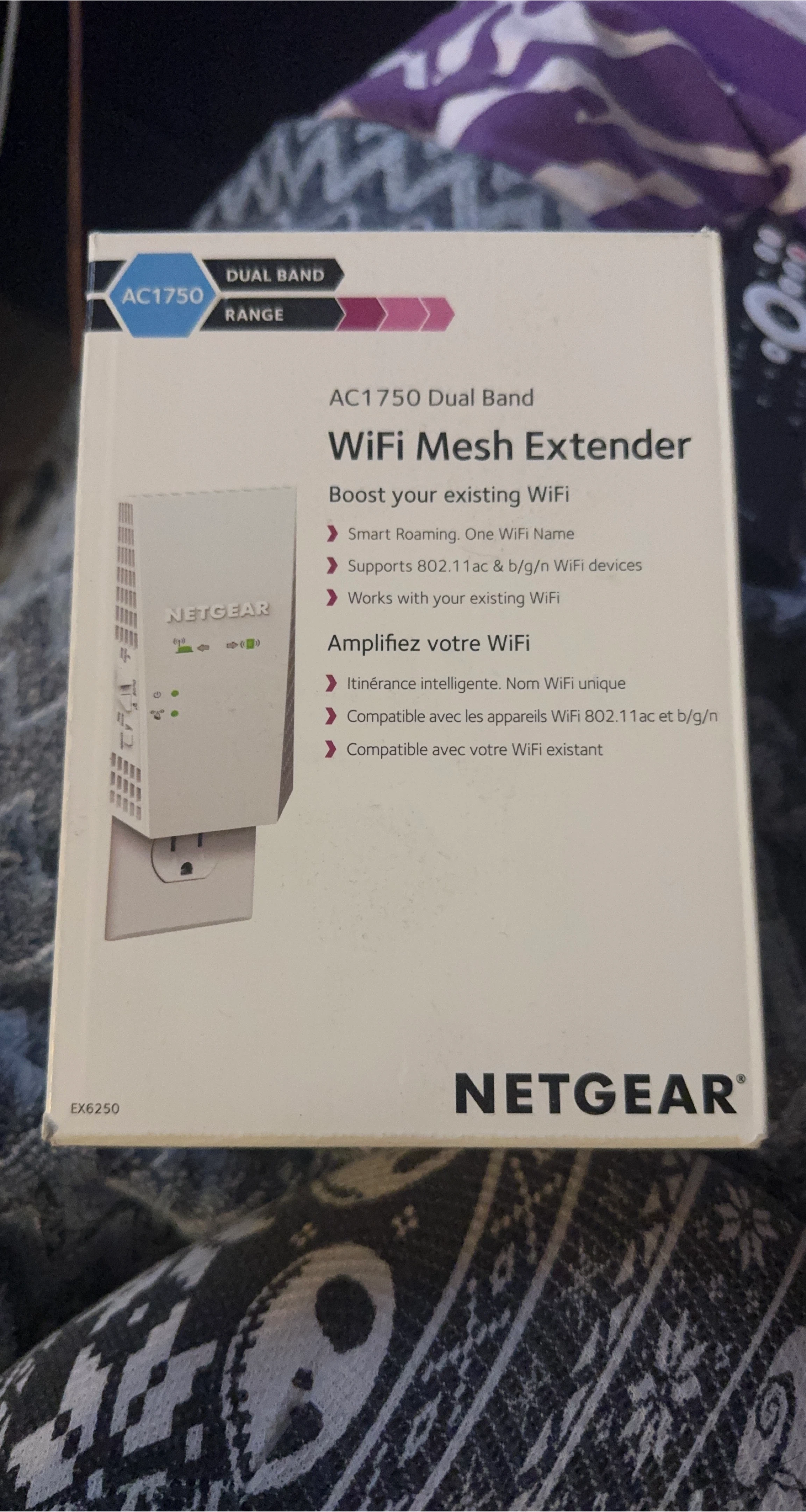 Selling a Netgear AC1750 Dual Band WiFi Mesh Extender! It's still in its original box, ready to boost your existing WiFi network. It supports 802.11ac & b/g/n WiFi devices and features smart roaming with one WiFi name Barely used didn’t end up working of my situation.