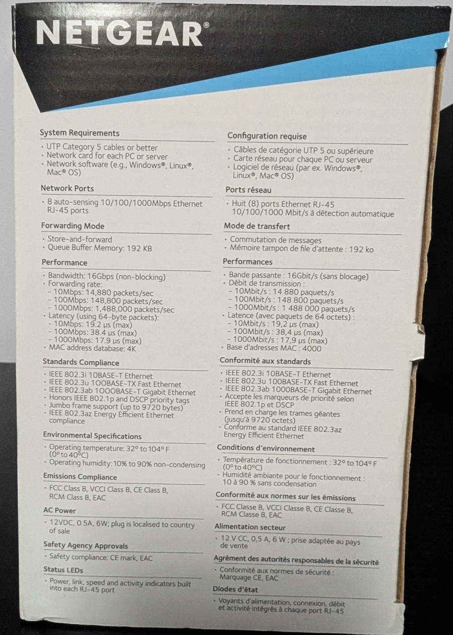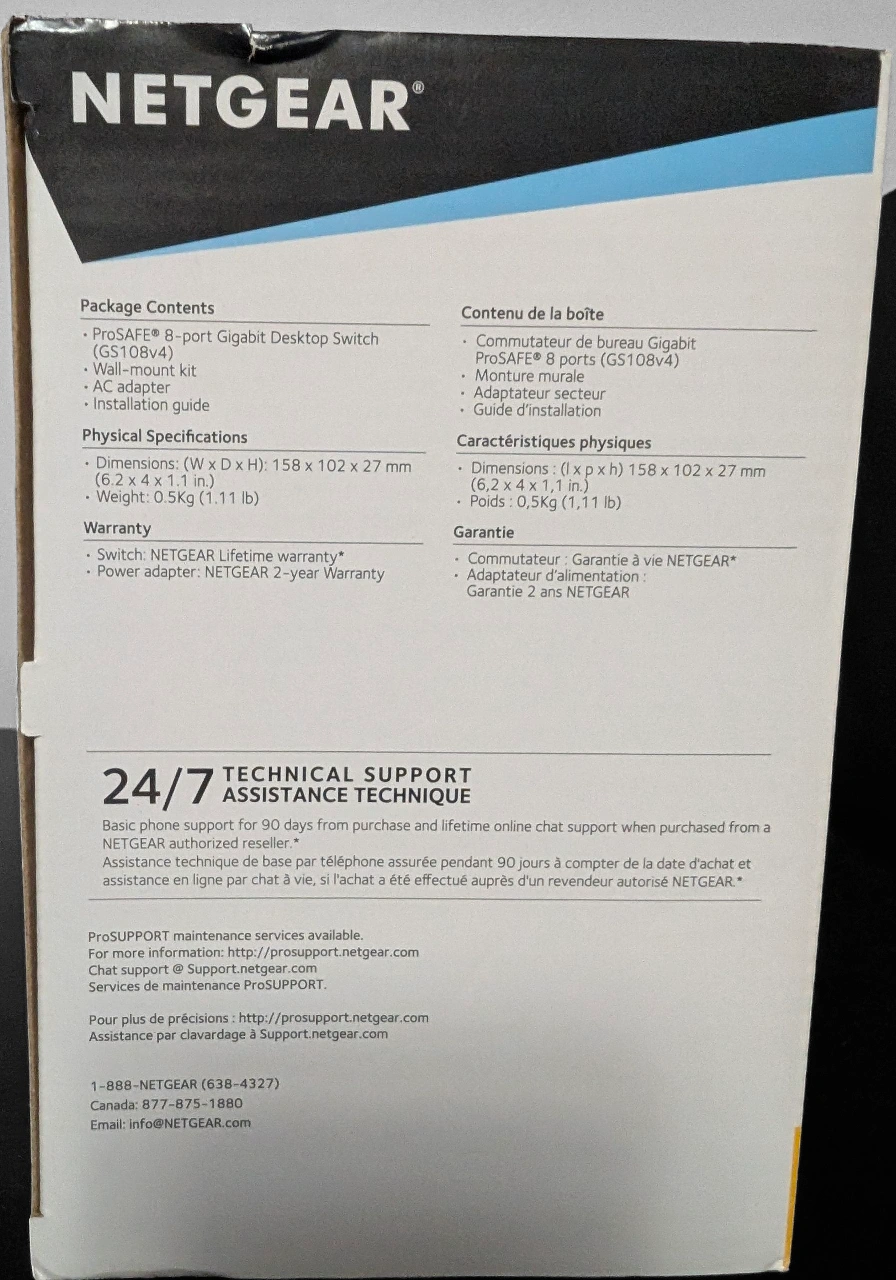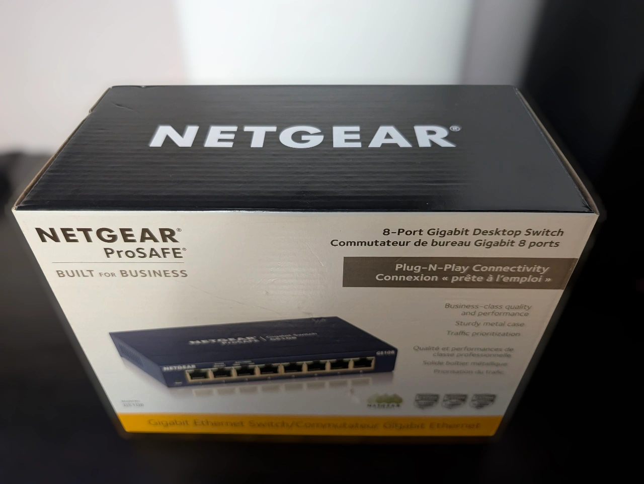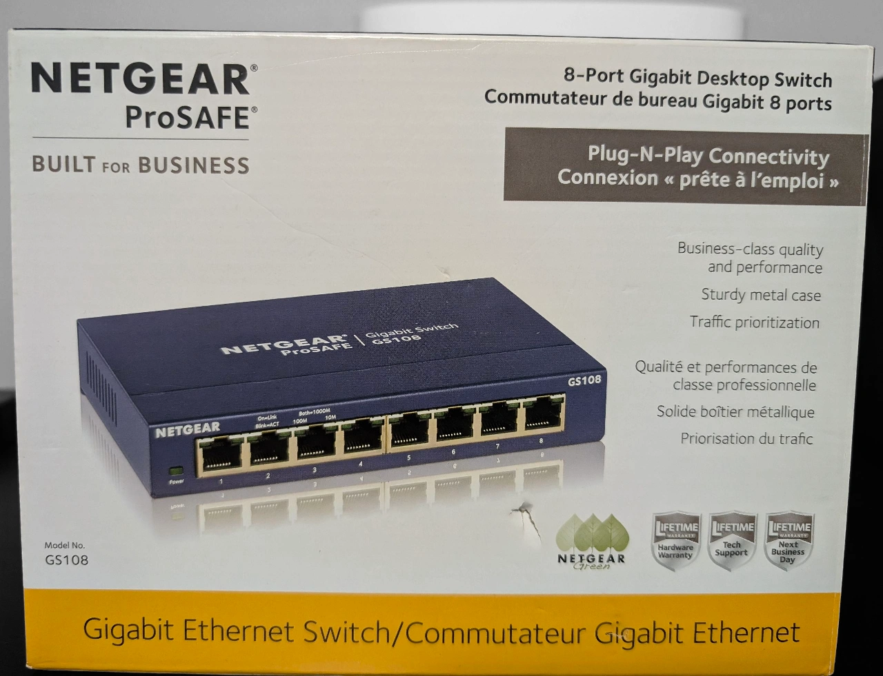 Selling a brand new NETGEAR ProSAFE GS108 8-Port Gigabit Desktop Switch! It comes in its original box and includes all the original components. This switch offers plug-n-play connectivity and business-class quality and performance. It has a sturdy metal case and supports traffic prioritization. Key specifications: - Dimensions: 158 x 102 x 27 mm (6.2 x 4 x 1.1 in) - Weight: 0.5 kg (1.11 lb)