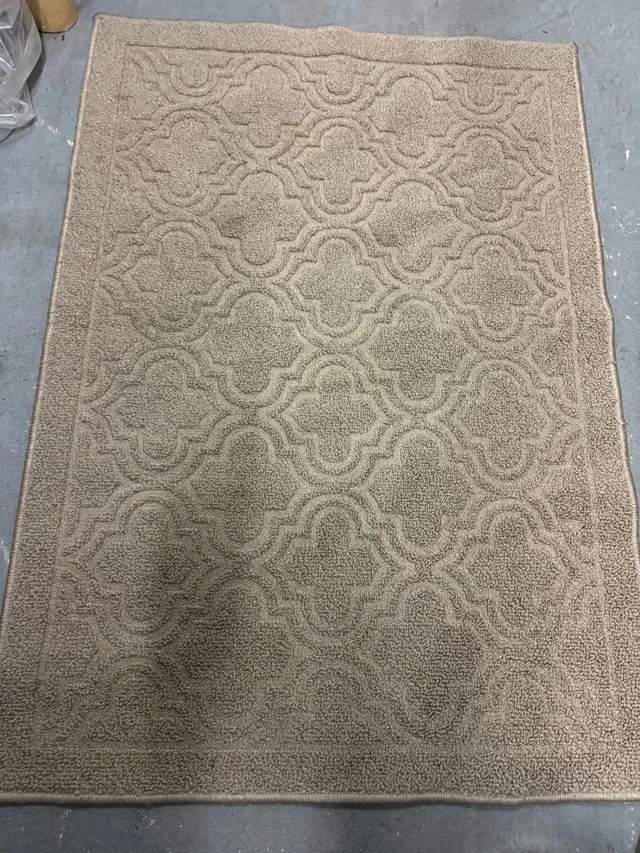 36Stylish neutral beige rug with a subtle raised pattern — perfect for bedrooms, living rooms, or entryways. Adds warmth and texture to any space with its elegant geometric design. ✅ Details: • Color: Beige / Taupe • Size: approx. 4’ x 6’ • Material: Soft synthetic blend (easy to clean) • Non-slip backing • Excellent condition — no stains, tears, or odors • Comes from a smoke-free, pet-free home Clean, rolled, and ready for pickup. Message to arrange a viewing or pickup!