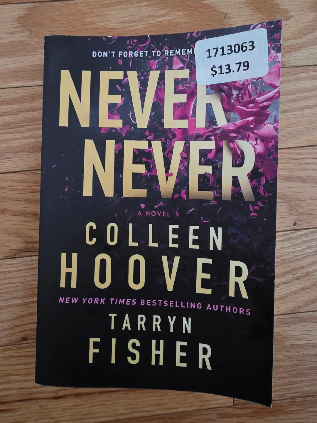 Selling the novel Never Never by Colleen Hoover and Tarryn Fisher. It's a gripping, twisty, romantic mystery. Perfect for fans of their other books!