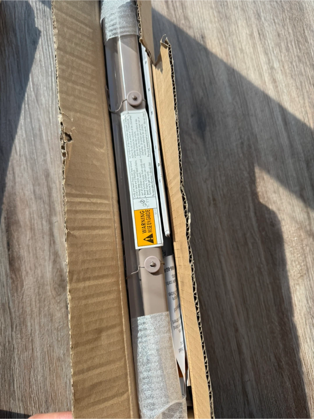 10Selling a new set of blinds still in the box! These are 14-16 inches by 48 inches and come in a bark/écorce colour. They are 1" S-slat blinds.