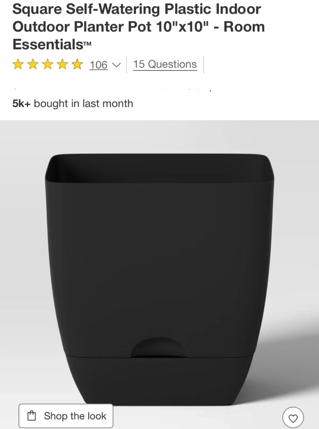 Show allNew 2 Square Self-Watering Indoor Outdoor Planter Pot 10"x10"