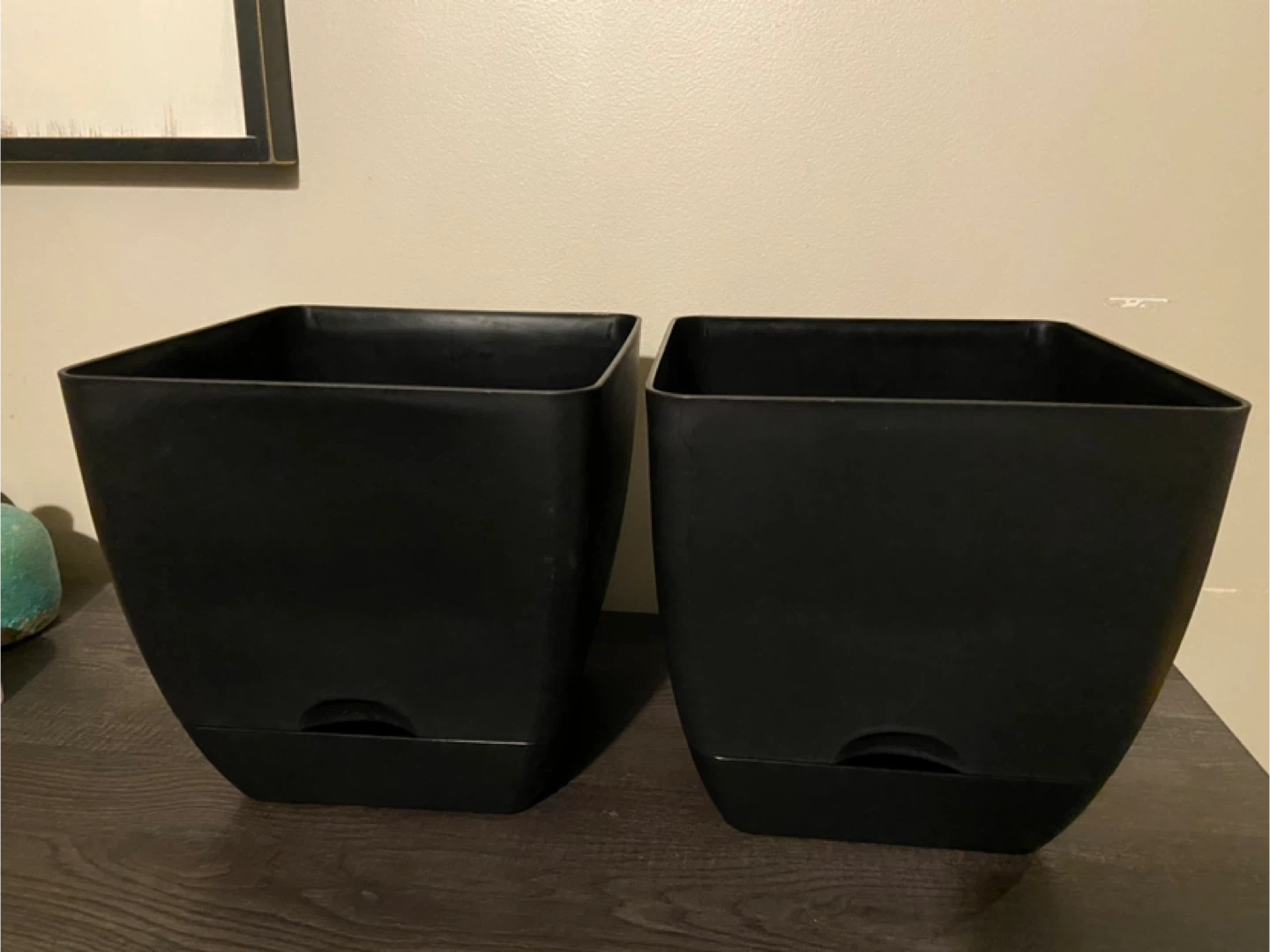 New Square Self-Watering Plastic Indoor Outdoor Planter Pot 10"x10" Set of 2 Black $20 for the set Pickup in Whitby