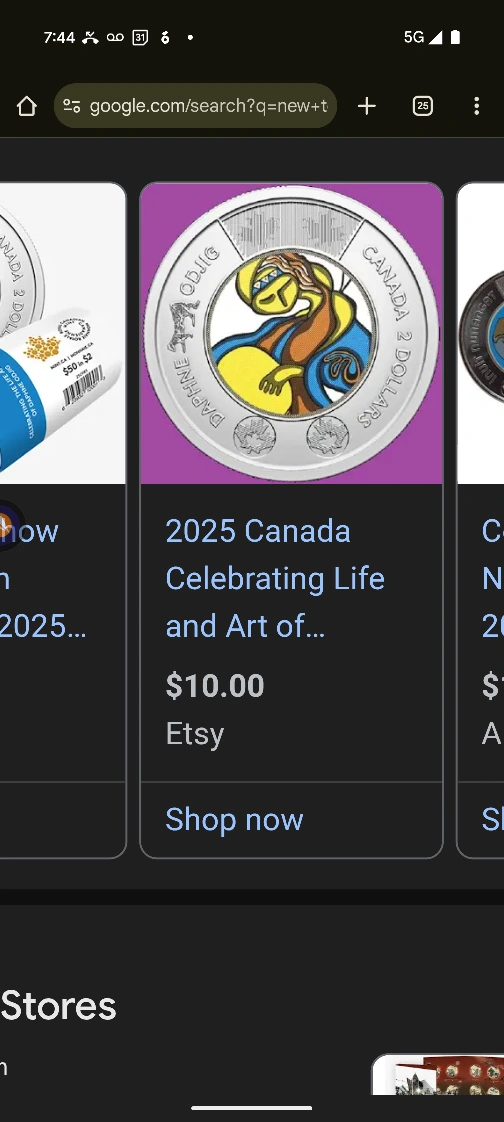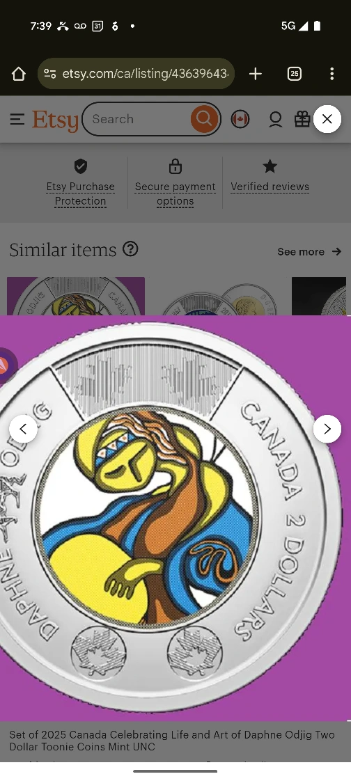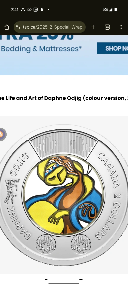 Get the new 2025 Toonie. Mint Condition. 2025 Canada Celebrating Life and Art of Daphne Odjig Coloured Two Dollar Toonie Coins. $9 each. 3 COIN MINIMUM = $27. Just try and find these elsewhere..you won't and they will just go up in value. Have Coloured and Non coloured Versions. . Can meet at Mall or Tims or Starbucks etc. MINT CONFITION coins uncirculated from Brand new Rolls. Contact me before they run out.