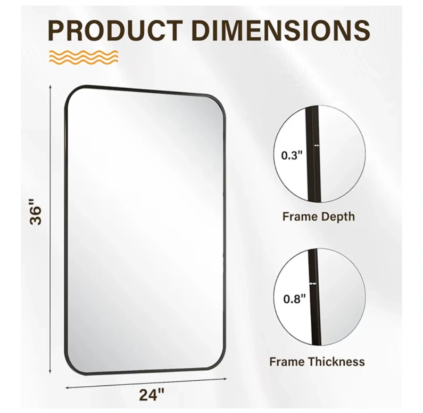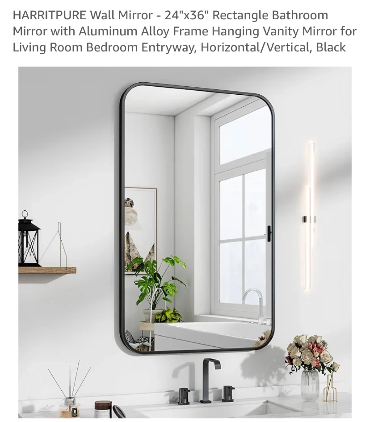 291New 24”x36” Mirror Metal Frame Black Horizontal or Vertical Hardware included $50 Pickup in Whitby