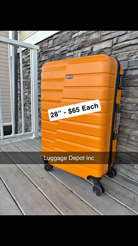 60BRAND: TOSCANO $65 Each for 28” Large Checked Bag. Total Exterior Dimensions including Wheels and Handle: Height: 30” Width: 18.5” Depth: 11” Features: 🔹4 Detachable Dual wheels, 360 Degree Spinner 🔹Combination Lock 🔹Telescopic Handle 🔹Lightweight Durable Shell 🔹Anti scratch body texture 🔹Fully Lined Interior 5 Years Limited Warranty by Manufacturer I Will Issue you a receipt which can be used for warranty or claim needs with airline if needed. Prices are FINAL & FIRM (Includes GST) Payment Methods: Debit Card/Cash/Etransfer Pick up in Panorama Hills NW
