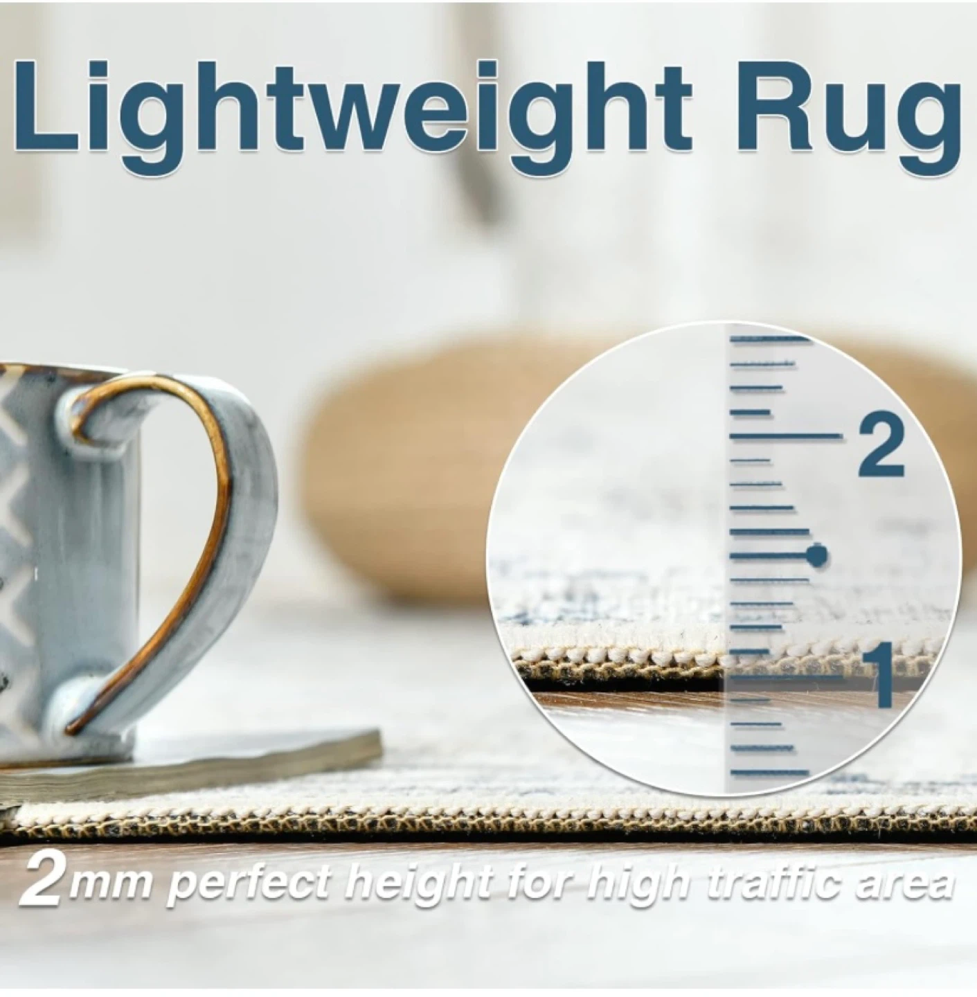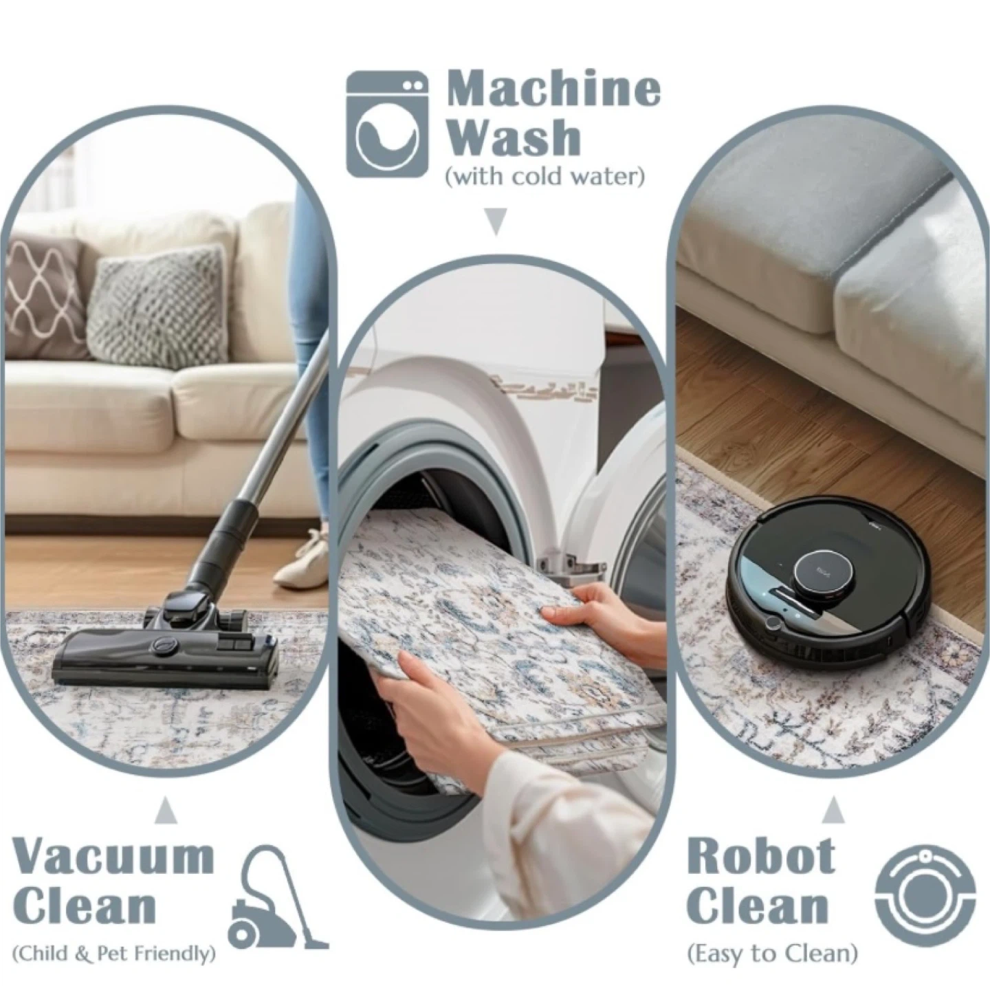 New 6’ Round Area Rug Washable Distressed Grey