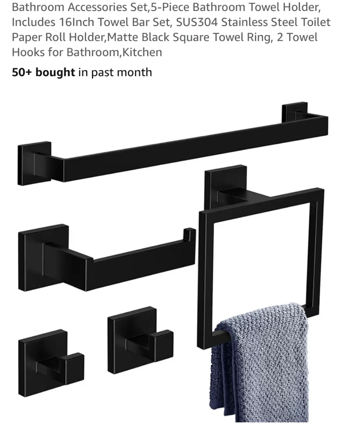 291New 5-Piece Bathroom Towel Bar Set Matte Black Includes mounting hardware $25 Pickup in Whitby