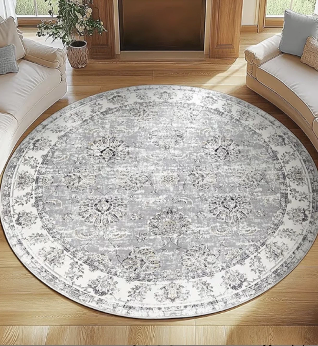 New 6’ Round Area Rug Washable Distressed Grey