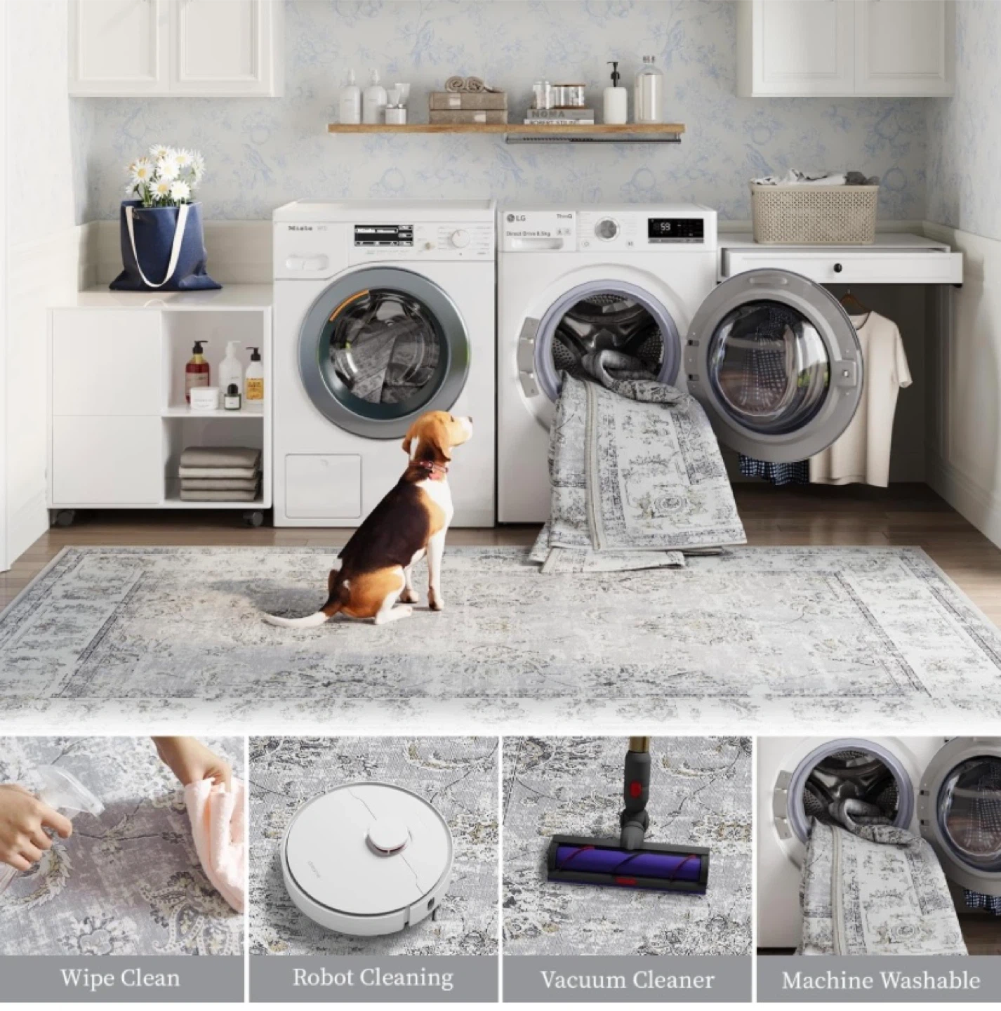 Show allNew 4x6 Washable Area Rug Vintage Grey