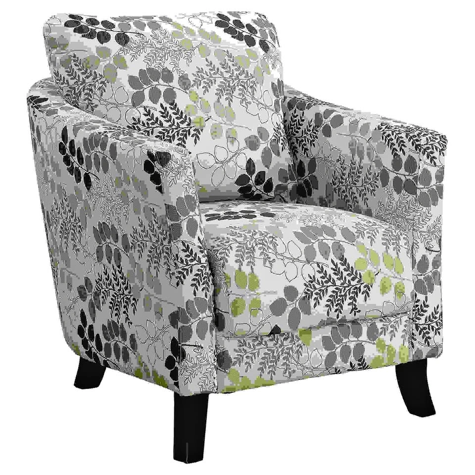 Item is brand new in box. How about an accent chair that is completely in touch with tomorrow? You've got it right here. The unique design is an earth-tone floral print on a durable polyester fabric, making it a super comfy option in your living room. The black flared legs pair perfectly with any living room decor - It blends in or contrasts for a super versatile decorative chair. Contemporary, this dazzling living room chair is a must-have in the living room of your small home, condo or apartment. Ready to make a statement? It all starts with a chair like this! - Contrasting simplistic legs are sturdy and will be on point with the rest of your living room color schemes. - Dimensions: 30" L x 33" W x 35" H - Upholstered decorative chair with the full comfort of your favorite living room chair; high seat back, curved arms, cushioned seat. - Your dream lounge accent chair; unique earth tone floral print for a chic look. - Item is located in Port Robinson, if the item is listed its available.