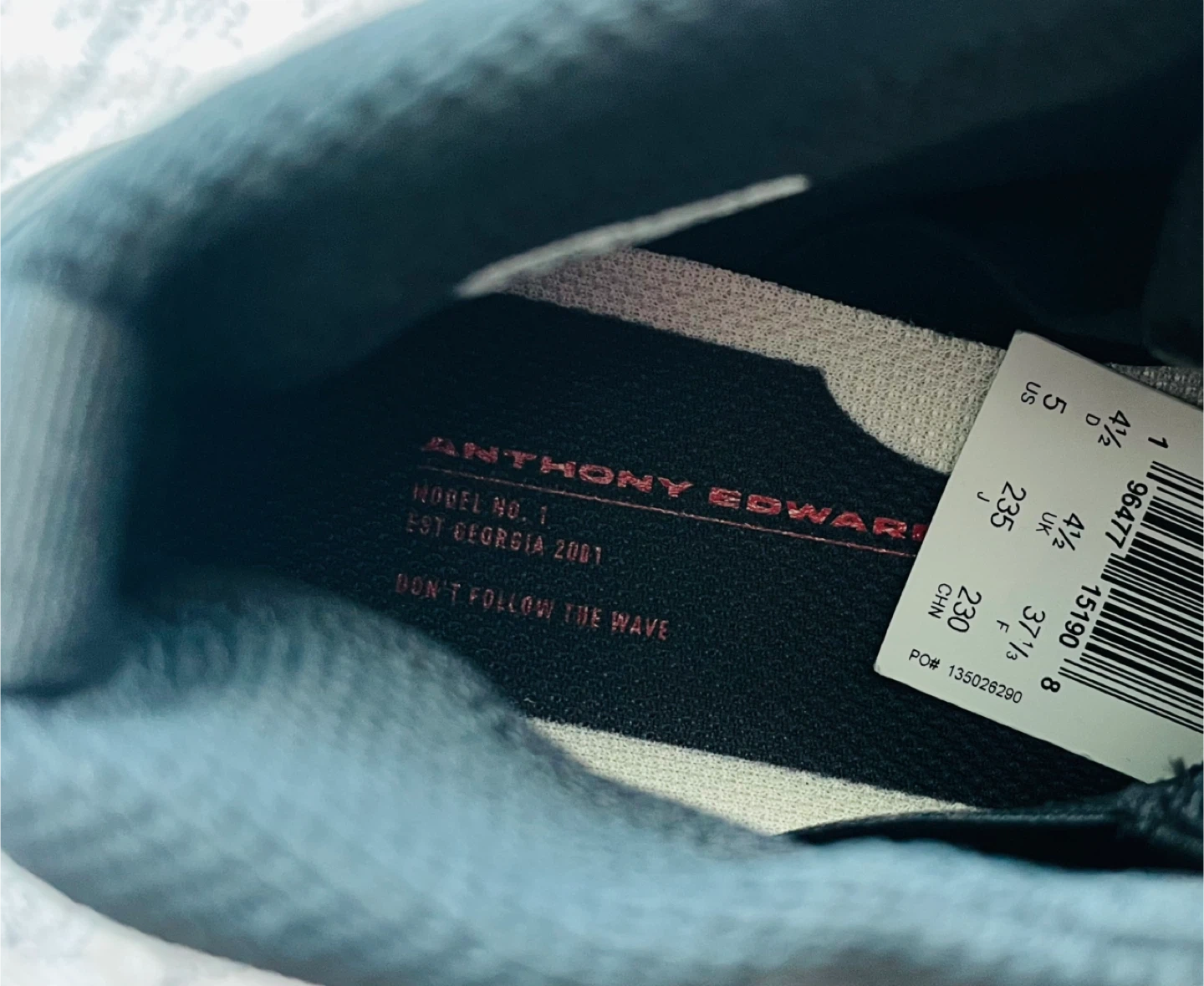 389Brand new, never worn – from the Anthony Edwards signature collection! Youth fit – also works great for women’s sizing. Size: US 5 / EU 37⅓. Stylish, lightweight & super comfortable – perfect for everyday wear or the court. No box (wasn’t kept).