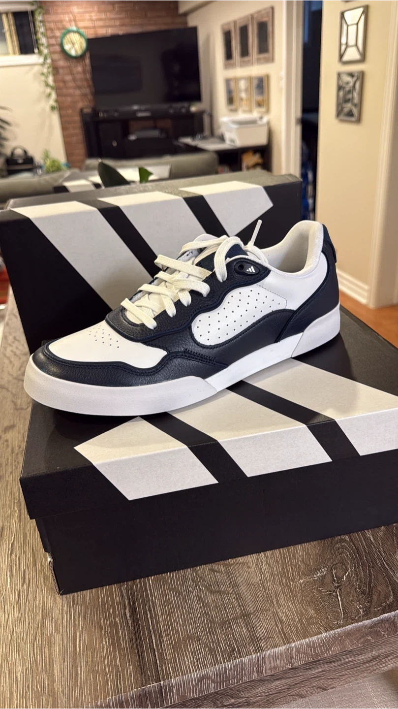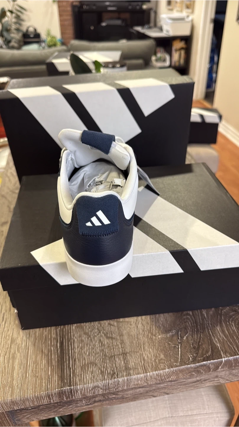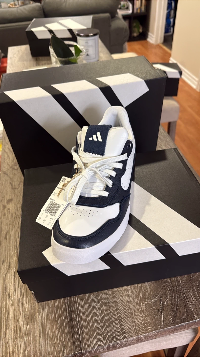 30These Adidas Court Silk shoes are brand new and come with the box! They're a stylish navy and white colour, perfect for everyday wear. Feel free to ask any questions!