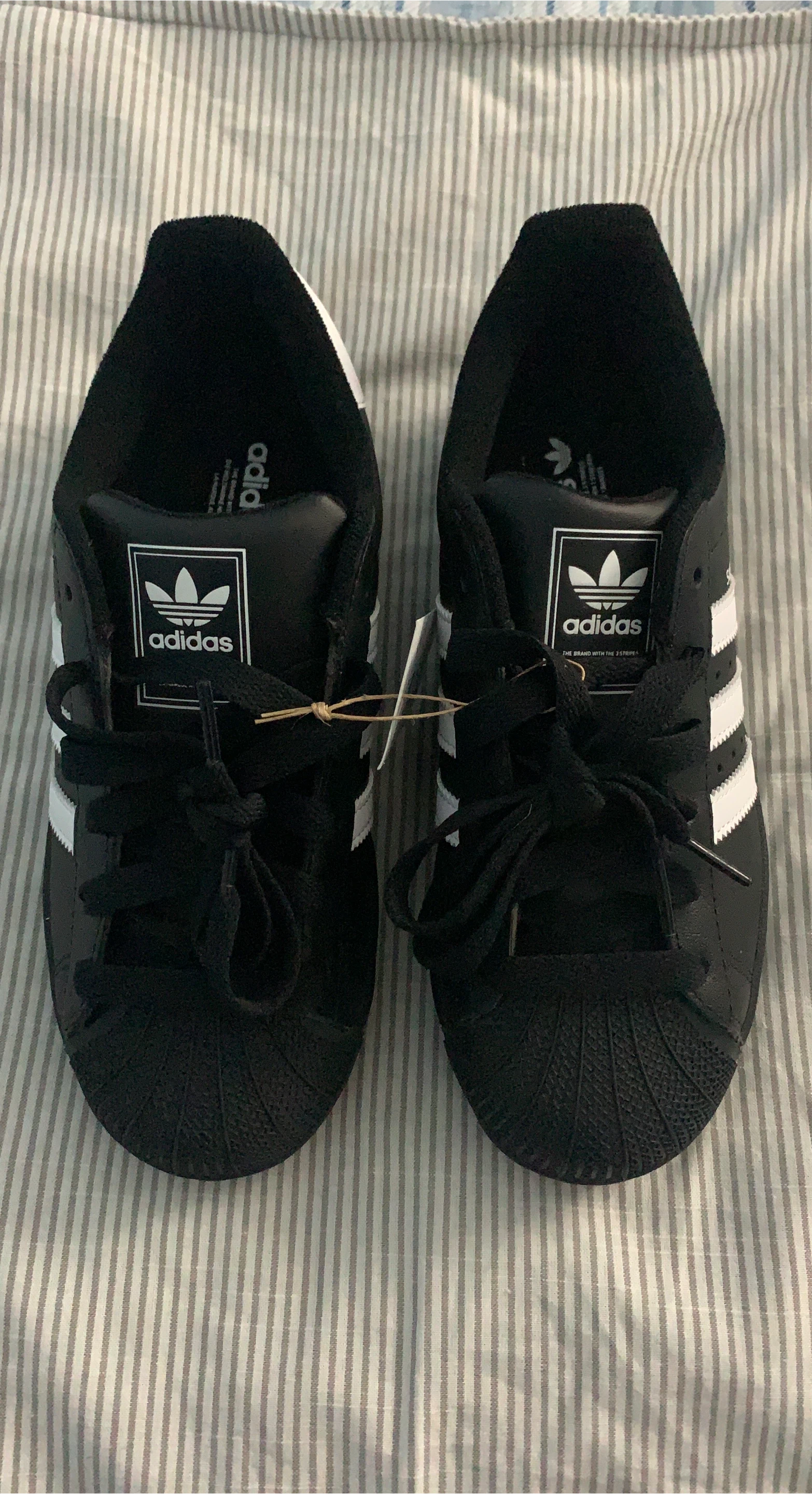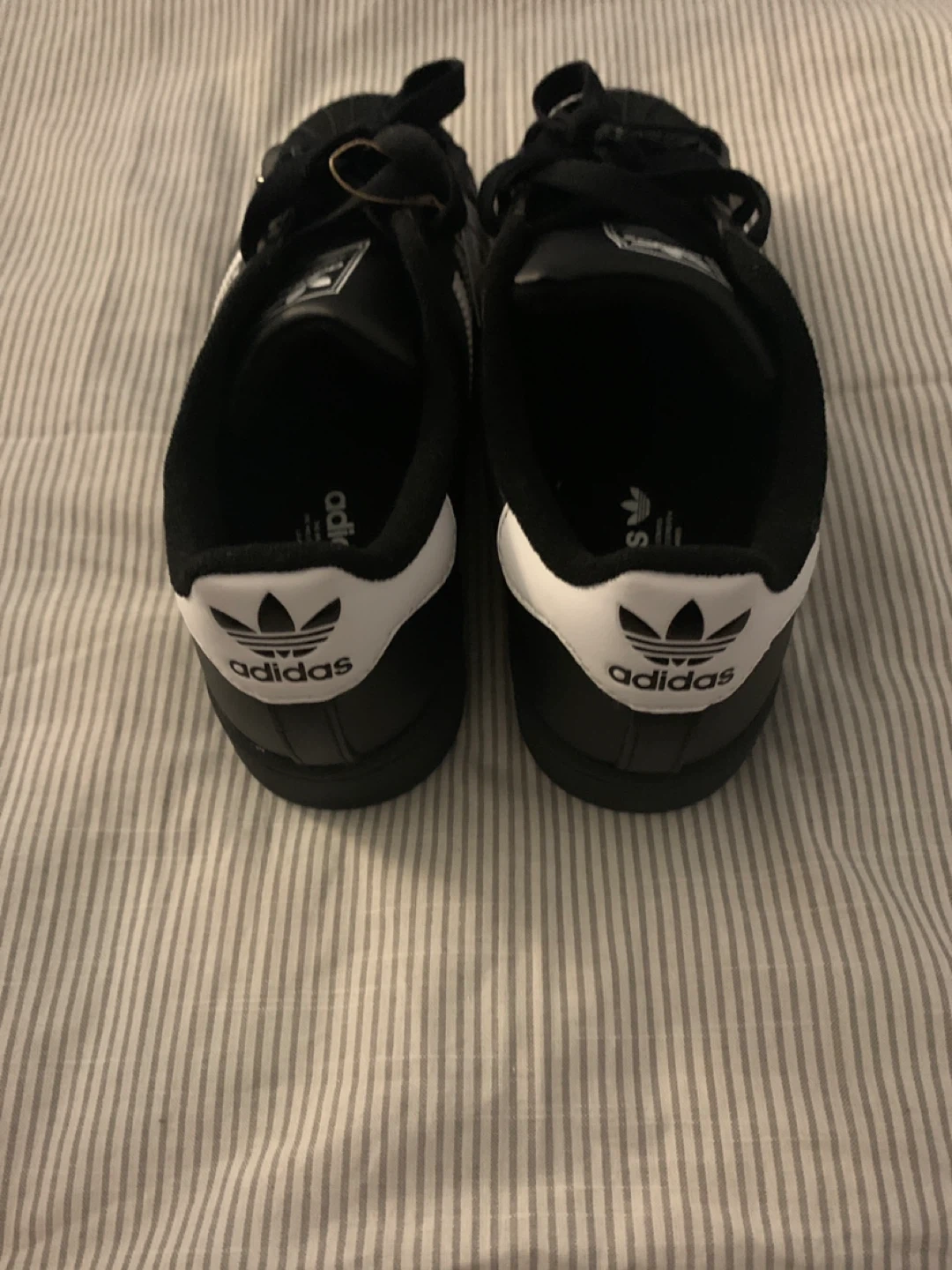 10These adidas superstars are super classy and brand new, not a scratch not a stain completely new! They feature the classic black and white design. Perfect for everyday wear! They are super comfortable and look great with any outfit definitely recommend.
