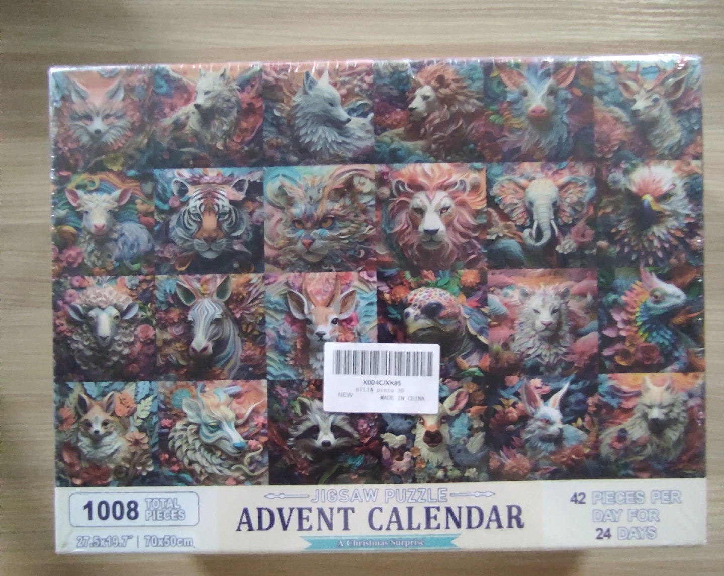 Selling a brand new Advent Calendar jigsaw puzzle with 1008 pieces! It's still sealed in its original packaging, ready for some holiday fun. The puzzle measures 27.5 x 19.7 inches, or 70 x 50 cm. Get ready for a Christmas surprise!