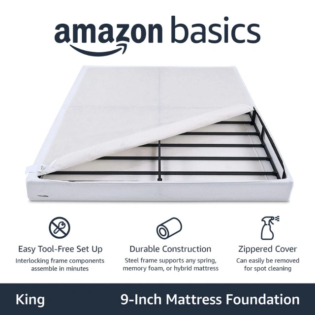 Brand New box spring. Comes unassembled in original box with all manufacturer parts and hardware for easy assembly. ** Only the box spring for sale. Bed frame not included. Pickup from south London. I can deliver in London for an extra fee. Retails at Amazon for $283 ($251 + tax). Save your money. Product details: Size: King Material: Metal Product Dimensions: 2.01L x 1.92W x 0.23H Meters Style: 9-Inch Special feature: Durable Colour: White King size box spring for added comfort and support; can help extend the life of a mattress Compatible with any spring, memory foam, or hybrid mattress Easy tool-free assembly; interlocking frame components assemble in minutes Durable steel frame and horizontal slats create a sturdy foundation 2-piece zip-together fabric cover can be easily removed for spot cleaning Product Dimensions: 79 x 75.5 x 9 inches (LxWxH)