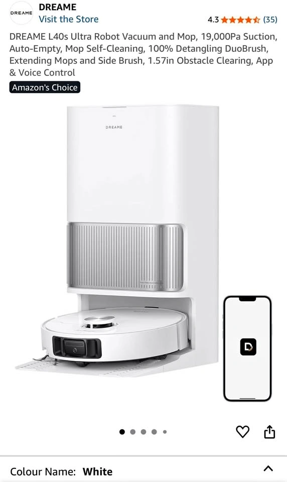 108New and sealed Dreame L40s Ultra robot vacuum and mop. - 19,000Pa Vormax™ Suction - Versatile Carpet Cleaning - Smart Multifunctional PowerDock™ - EasyLeap™ 1.57in Obstacle Clearing - HyperStream™ Detangling DuoBrush - Dual Flex Arm Technology - AceClean™ DryBoard Self-Cleaning - 3DAdapt™ Obstacle Avoidance It boasts a sixth-generation TurboForce high-speed motor, 19,000Pa Vormax suction offers powerful debris pickup from floor gaps and carpets, while minimizing noise. Choose the most suitable carpet care strategy through the Dreamehome App. The HyperStream Detangling DuoBrush features one bristled rubber brush and one TPU rubber brush to efficiently pick up debris from both hard floor gaps and carpets, preventing tangles. Skip manual dust box emptying for up to 100 days with L40s Ultra, when it also rinses mop pads with 167℉ hot water and dries them. The EasyLeap system enables the robot vacuum to effortlessly cross thresholds, door tracks, and steps up to 1.57in high. Pick up in Courtice. Please check my other listings!