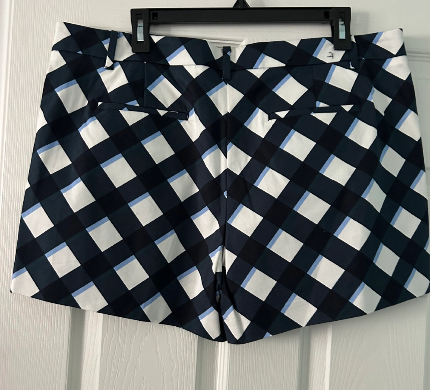 New Ann Taylor Devin Fit shorts in size 14. They have a really cool geometric pattern in navy, white, and light blue. They are very soft and have stretch. Never worn