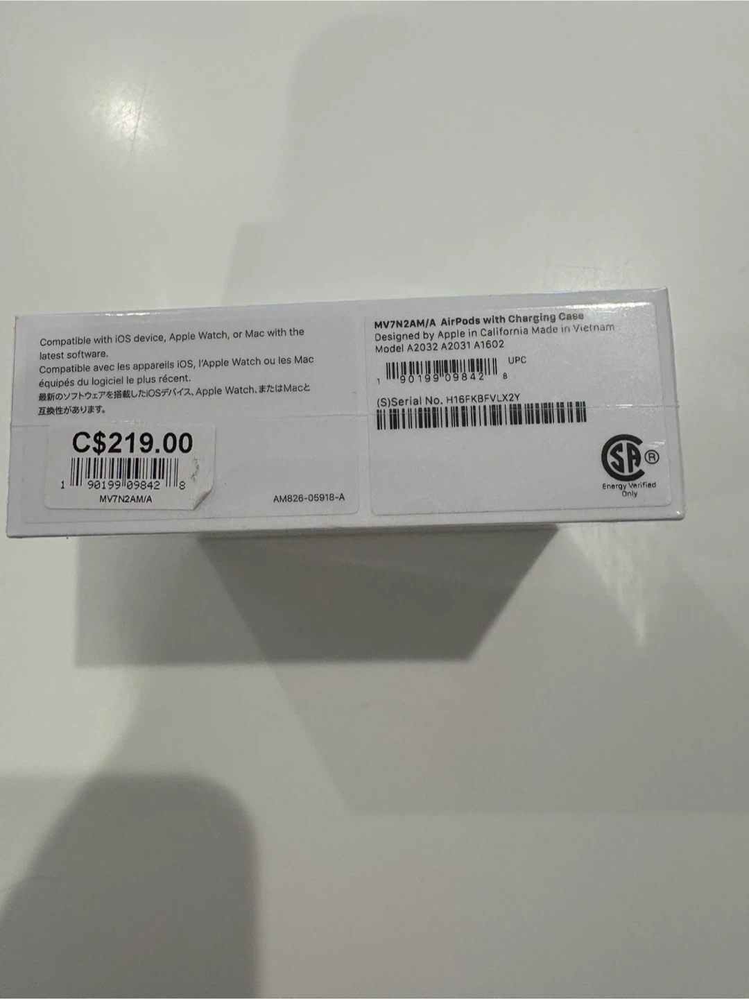 39Selling a brand new, unopened pair of Apple AirPods with Charging Case (Model MV7N2AM/A)! The box is still sealed. Originally bought for $219.00. Compatible with iOS devices, Apple Watch, or Mac.