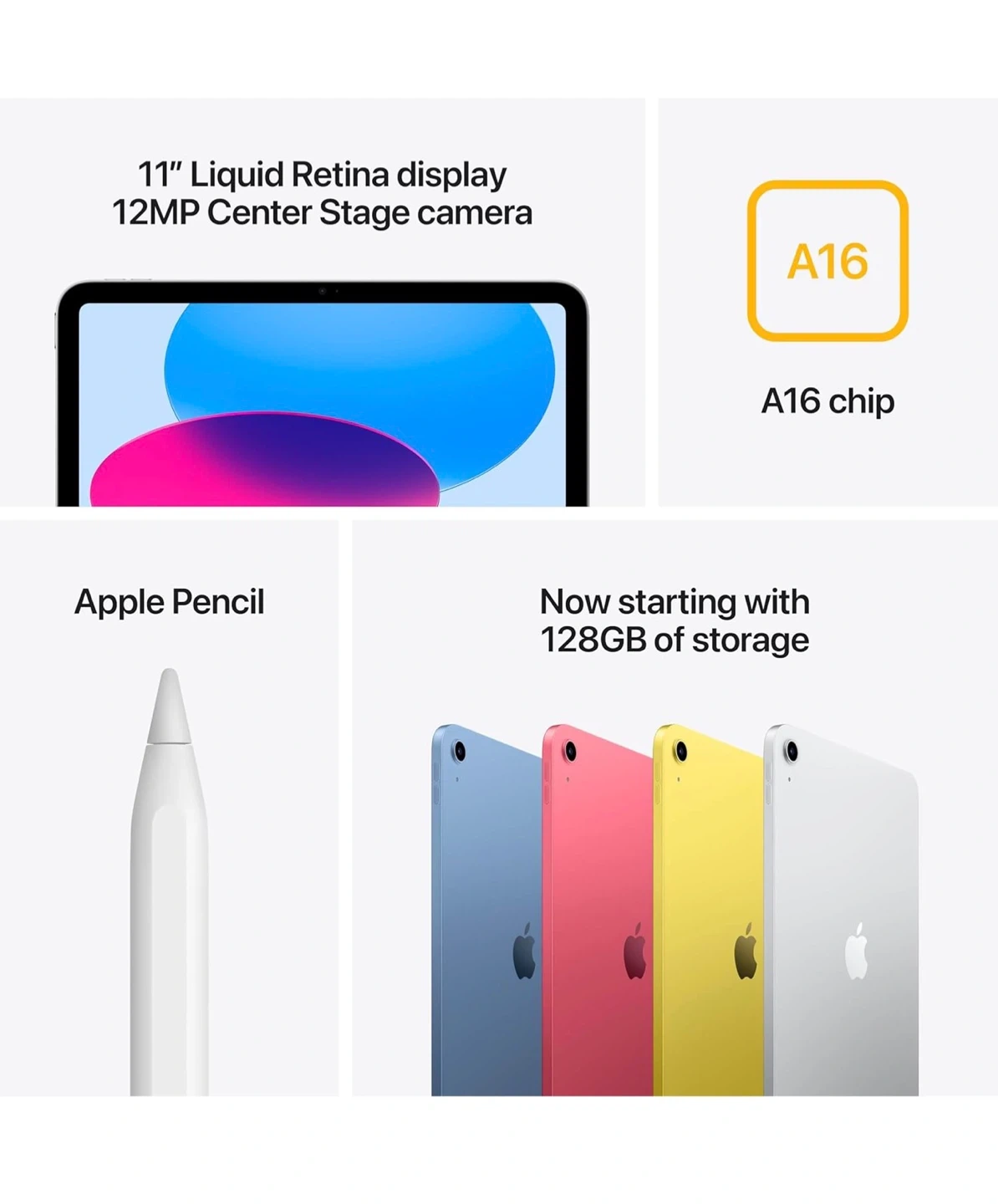 10Selling a brand new unopened Apple iPad (A16) with 128GB of storage in a beautiful Silver colour! It comes with: - 11" Liquid Retina display - 12MP Center Stage camera - A16 chip Included in the box are the USB-C charge cable and USB-C power adapter
