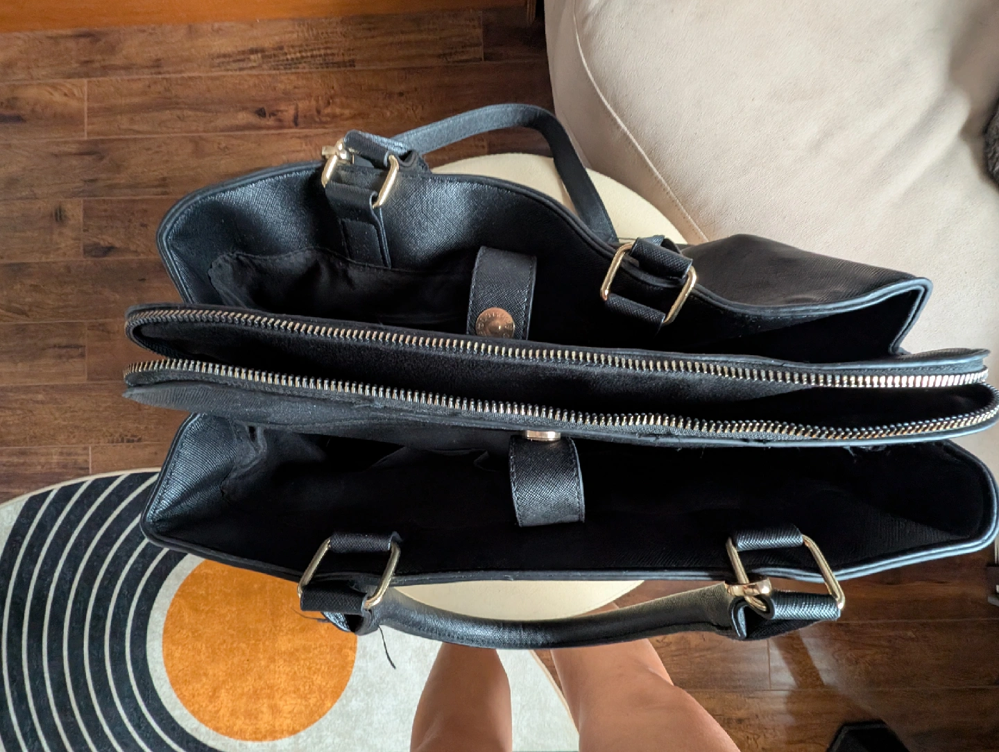 Brand new black laptop/purse combo. Has hand straps, and removable shoulder straps, 13 inch laptop sleeve, as well as many compartments. All zippers work, perfect condition. Great for work and school! * price is firm