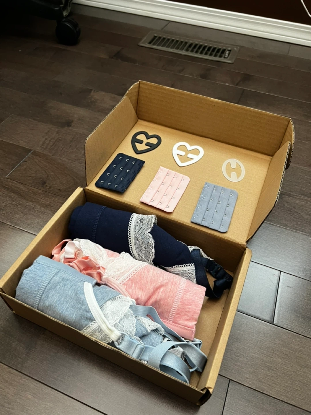 New Athaelay nursing bra set in size XL. It comes in a variety of colours including pink, blue, and navy. The box is included, along with some additional bra clasps. Paid $33 new.