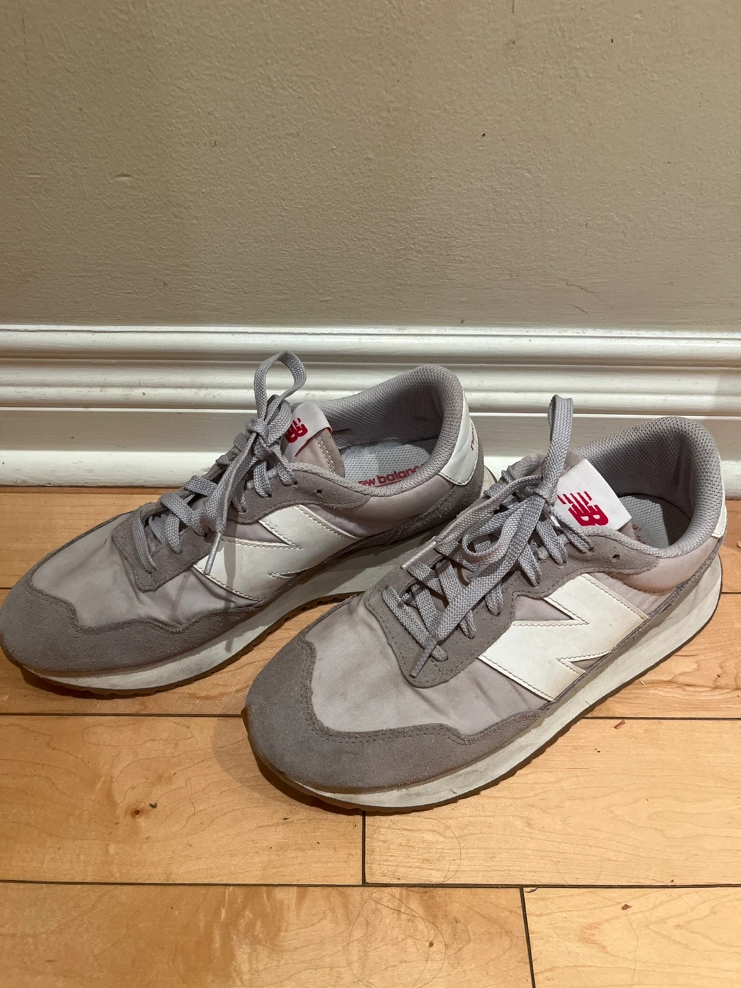 Selling a pair of New Balance 237 sneakers in a stylish grey colour. They are in good condition and ready for a new home. Size is 8.5 US.