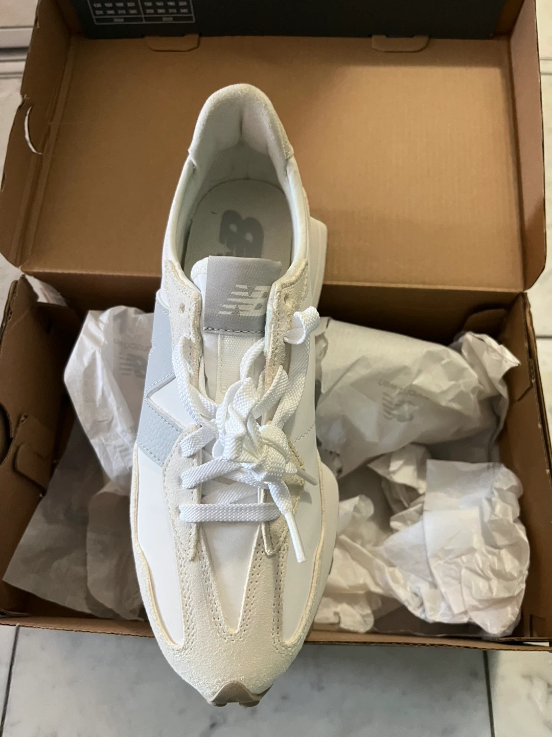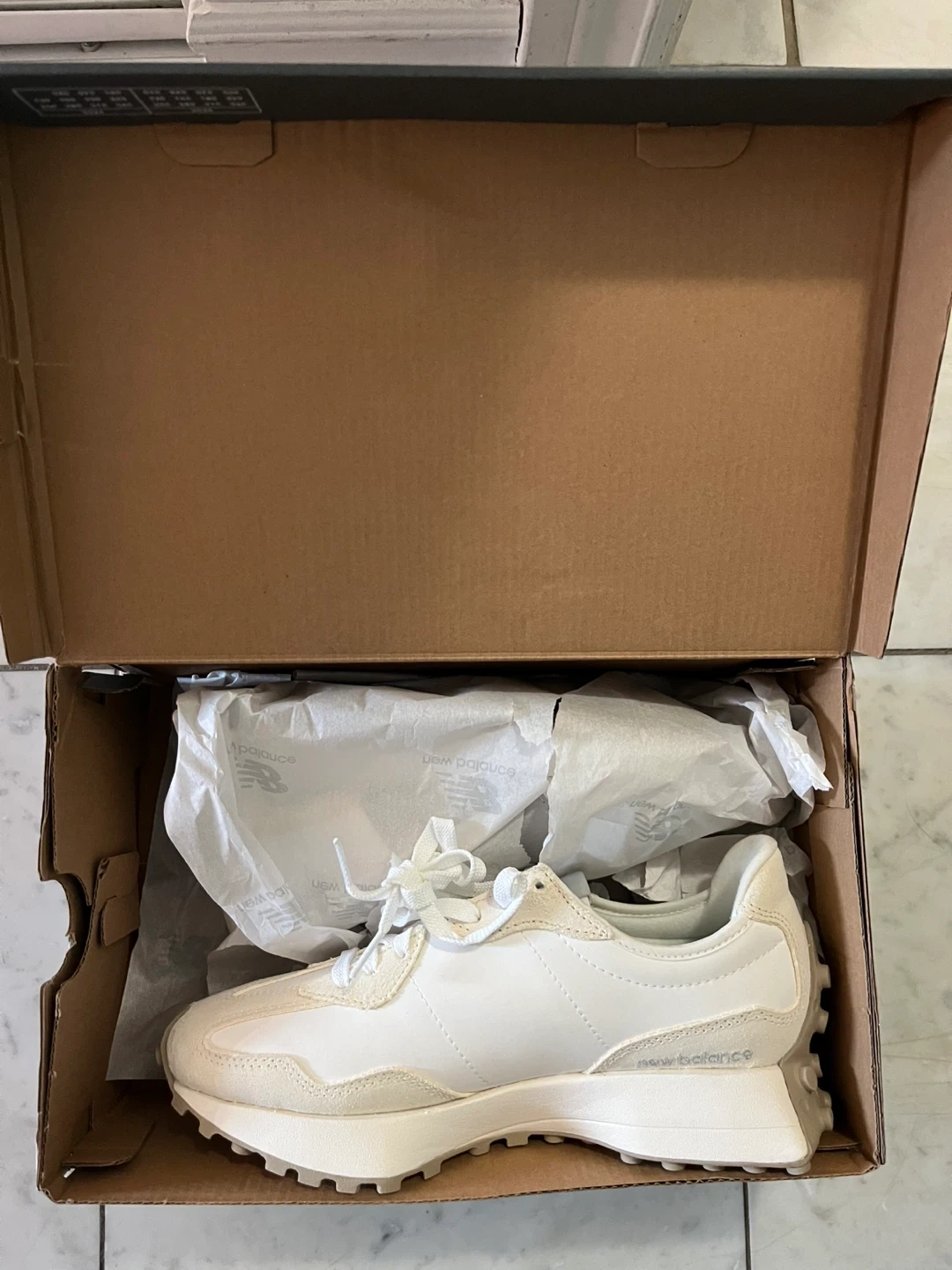Selling a pair of New Balance 327 sneakers in a cream and white colourway! They are in new condition and come with the original box. These sneakers are super stylish and comfortable, perfect for everyday wear!