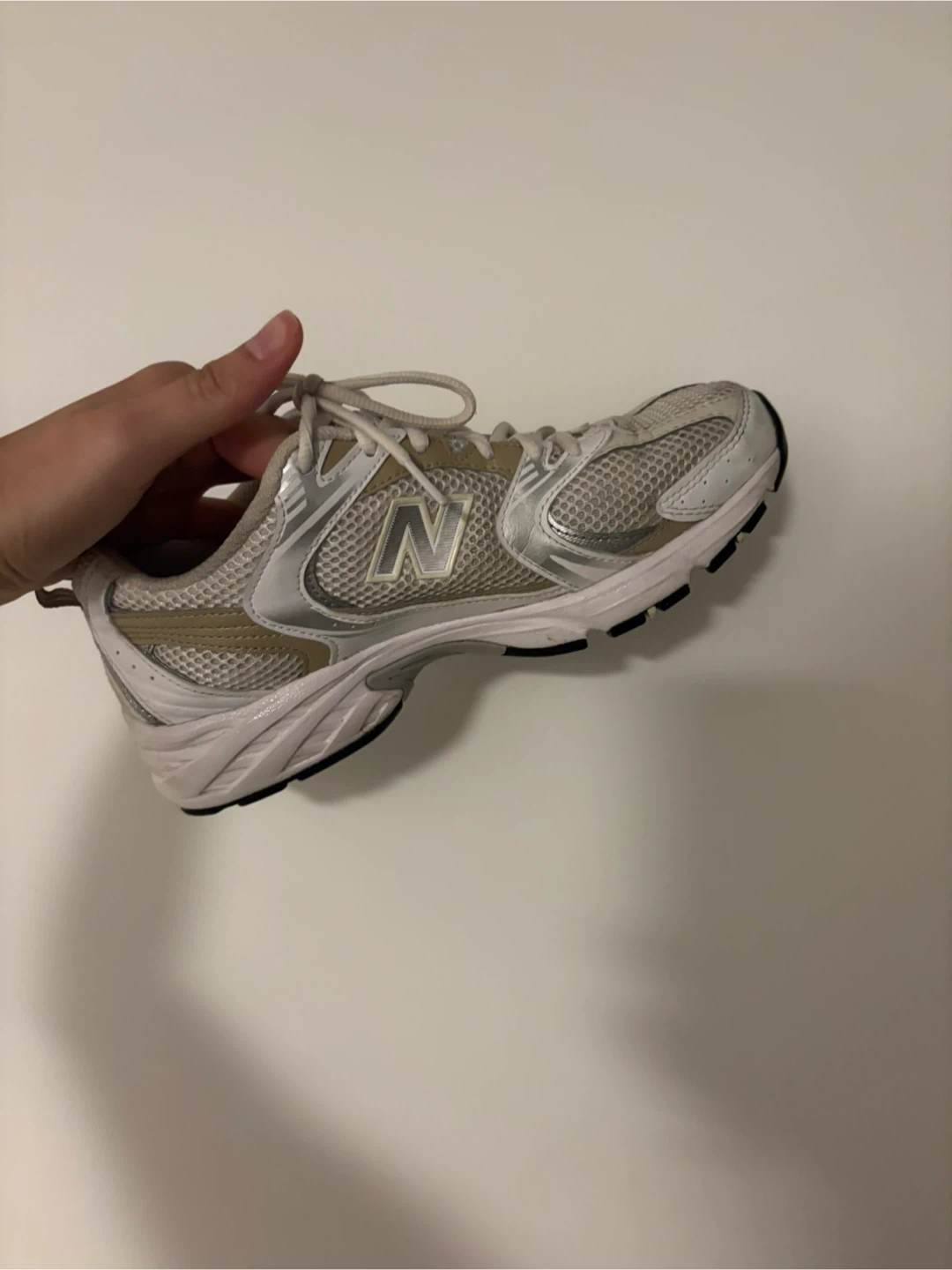 Selling a pair of New Balance 530 running shoes in white and silver! These are great for everyday wear or hitting the gym. They're in good condition and ready for a new home. Perfect for adding a touch of retro style to your wardrobe