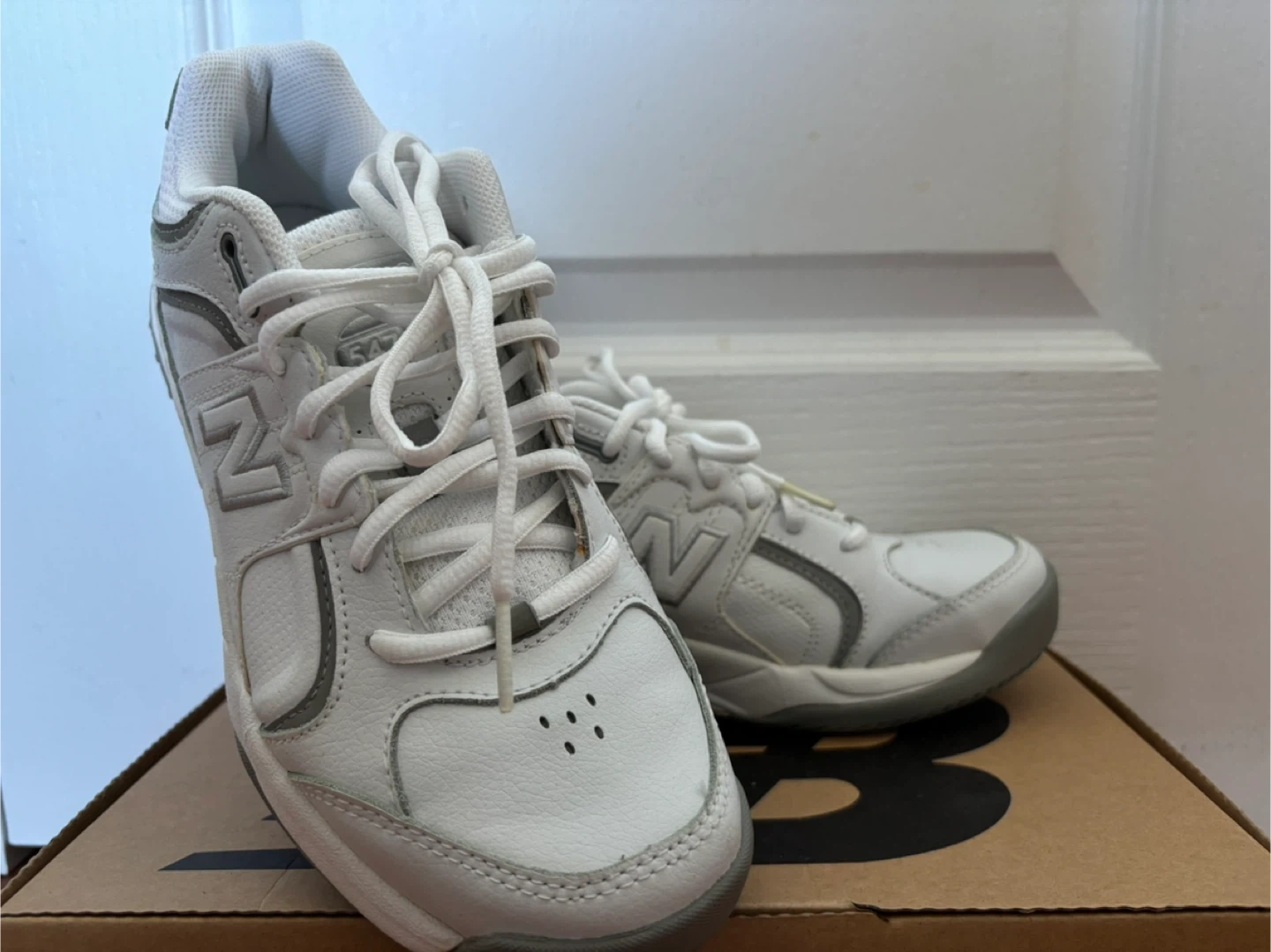 56Selling a pair of New Balance 547 women’s tennis shoes in white. They are in great condition and ready for a new home! Size is US 7.5.