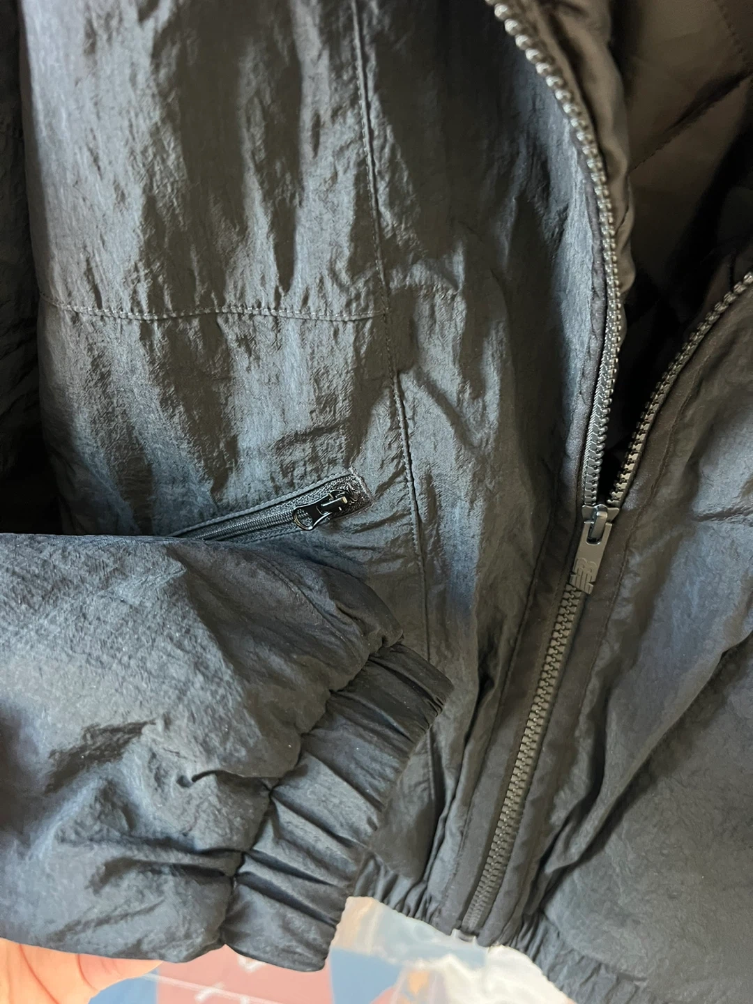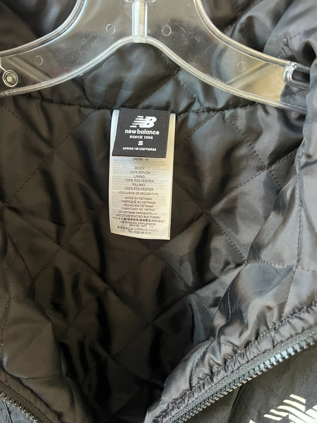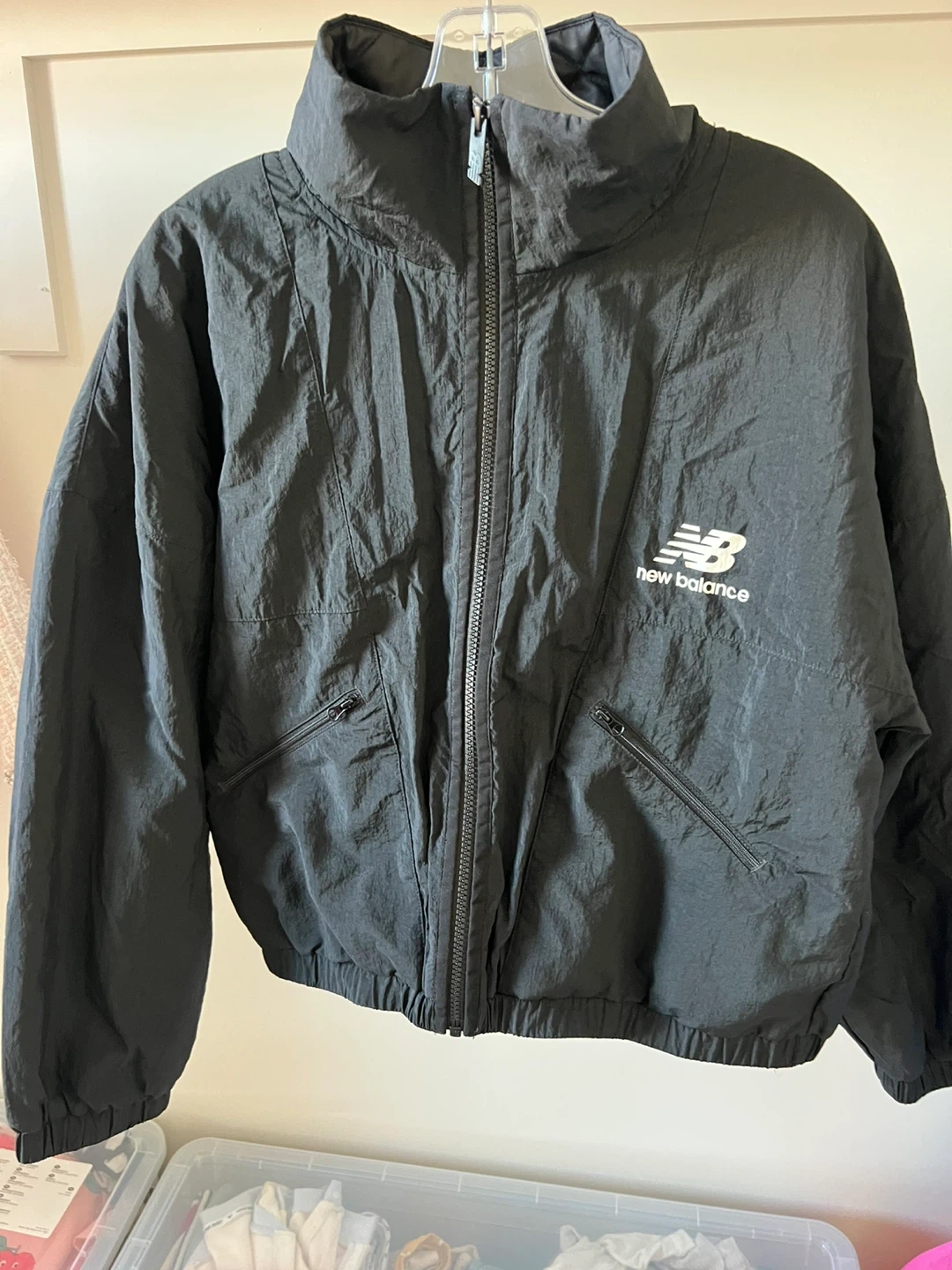 83Selling a New Balance black jacket in size medium! It is in excellent condition. The jacket features a full zipper and two zippered pockets. The material is 100% nylon.