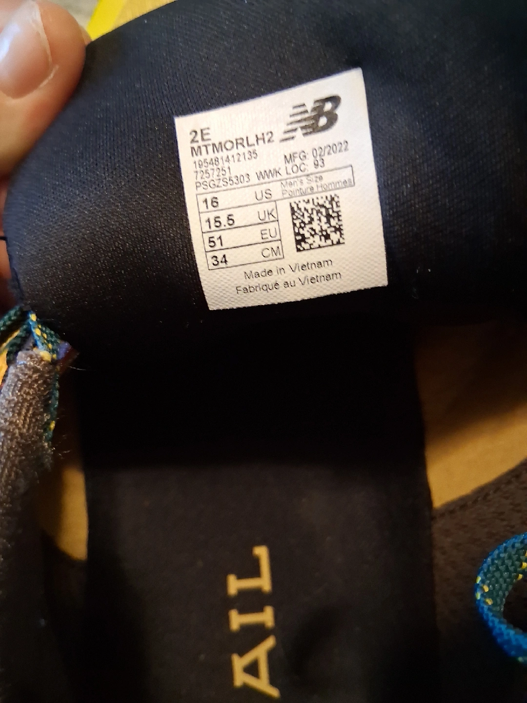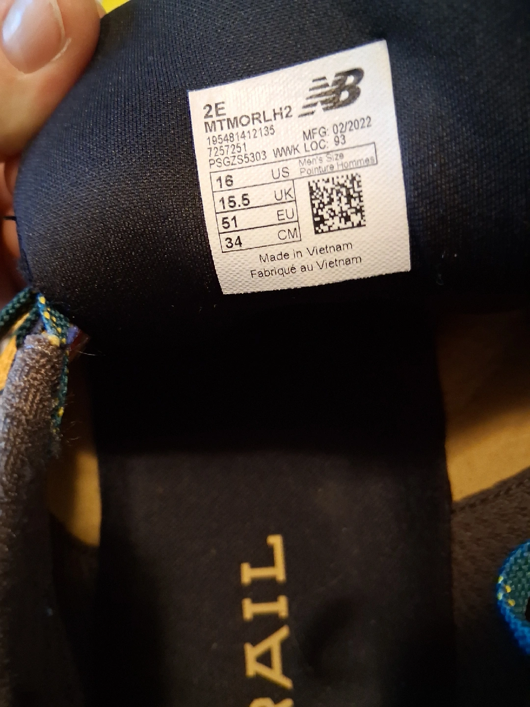 20Selling a pair of New Balance Fresh Foam More Trail v2 men's shoes in size 16 US. The manufacturing date on these is February 2022. They're made in Vietnam and ready for your next adventure!