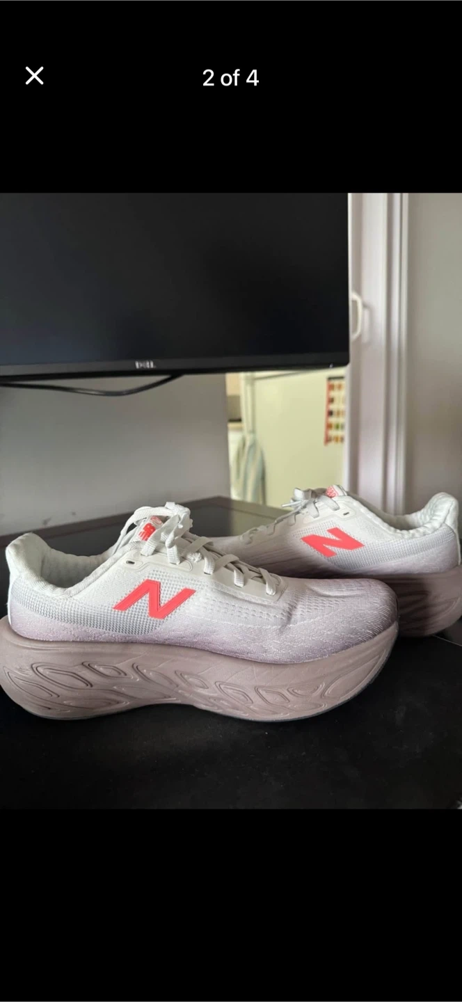 Selling a pair of New Balance Fresh Foam X More v4 women's running shoes. These are super comfortable and provide excellent cushioning for your runs or everyday wear. They feature the Fresh Foam X midsole for a plush ride. Great for anyone looking for a supportive and comfortable running shoe!