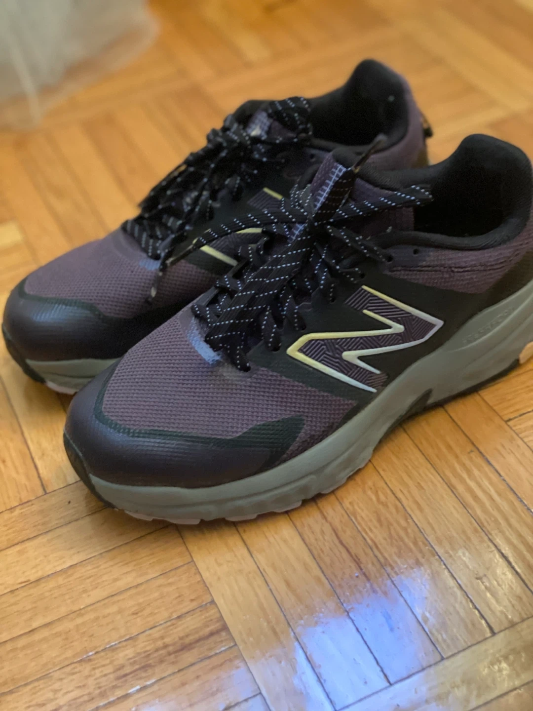 84Selling a pair of New Balance WT510MP6 trail running shoes for women in size 8. These shoes are in great condition , used just a few times.They are a stylish purple colour.