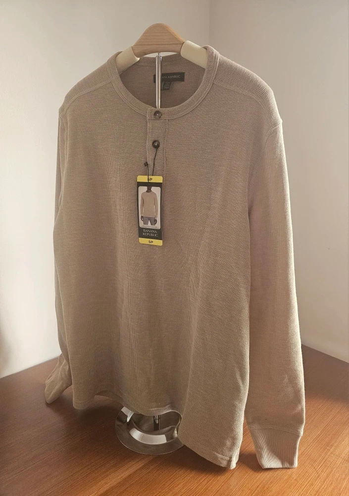 33I'm selling a brand new Banana Republic Henley shirt. It's a size small and has never been worn, still with tags attached! The colour is a versatile neutral tone, perfect for layering or wearing on its own. $10 Pick up only