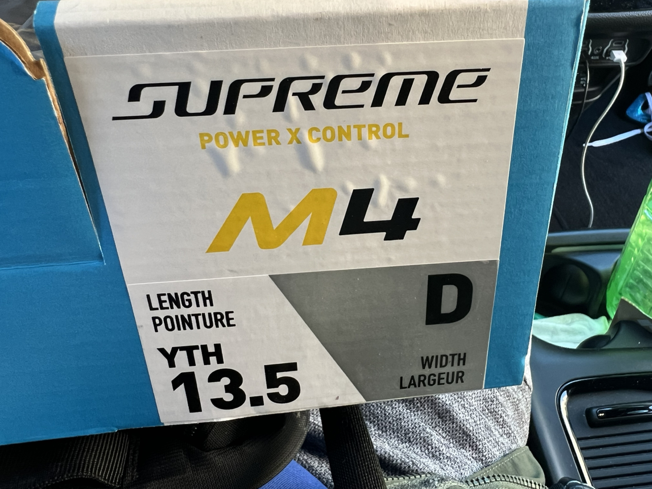 95Brand new. Can’t return to store cause they got sharpened. Width D Meet up near Metrotown. NEVER worn. YOUTH size 13.5