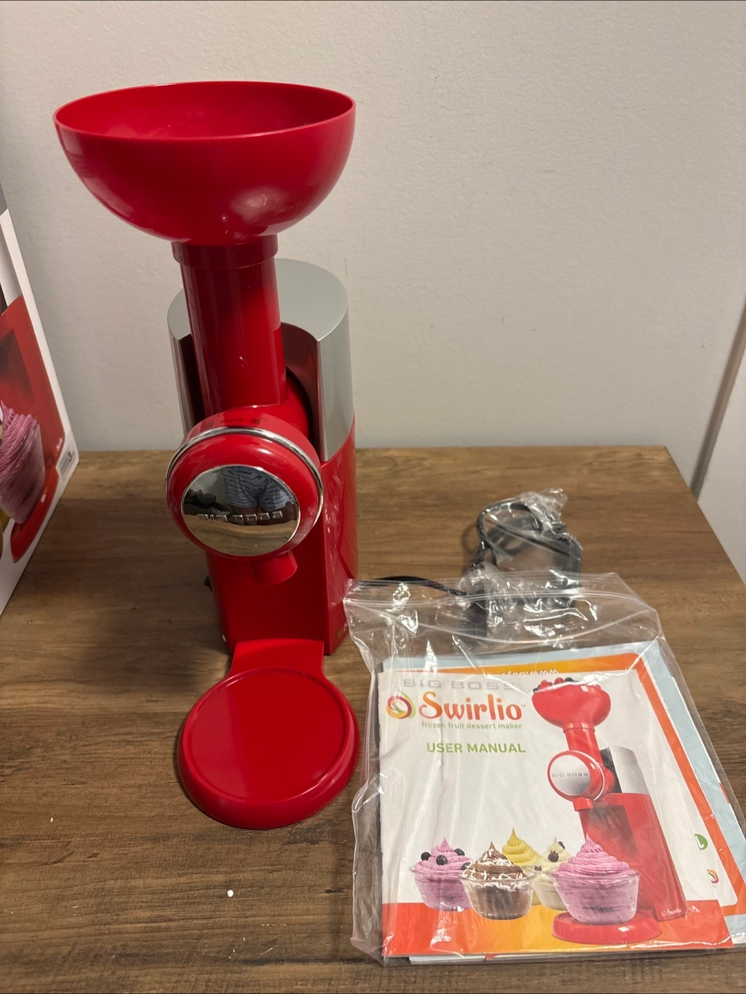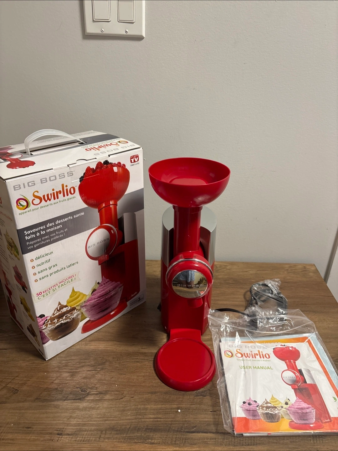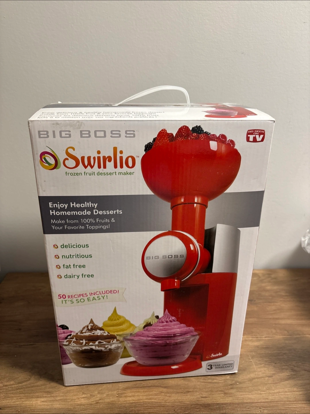 Selling a brand new Big Boss Swirlio frozen fruit dessert maker! It's in its original box and has never been used. Make healthy homemade desserts from 100% fruits and your favourite toppings. Recipes are included so it's super easy