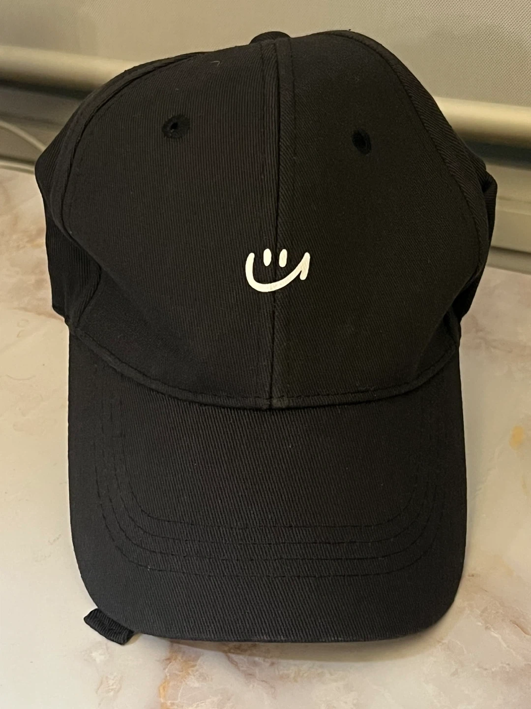 88Selling a black baseball cap. It has a cute little smiley face on the front. Great for everyday wear! Cash only Pickup only