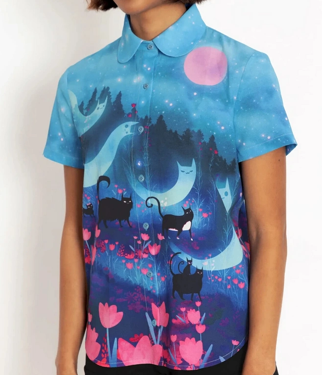 New Blackmilk Kitty Parade Button Up Shirt