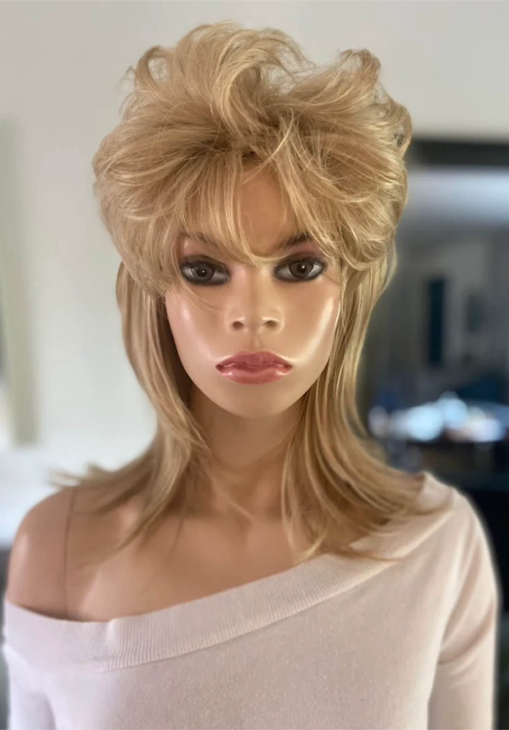 83Selling a blonde layered synthetic mullet wig! It’s brand new and smk-free. Halloween costume ideas: rock star, David Bowie Labyrinth Goblin King! It has an elasticated cap, so is stretchy and breathable. There are elasticated straps that adjust to fit.