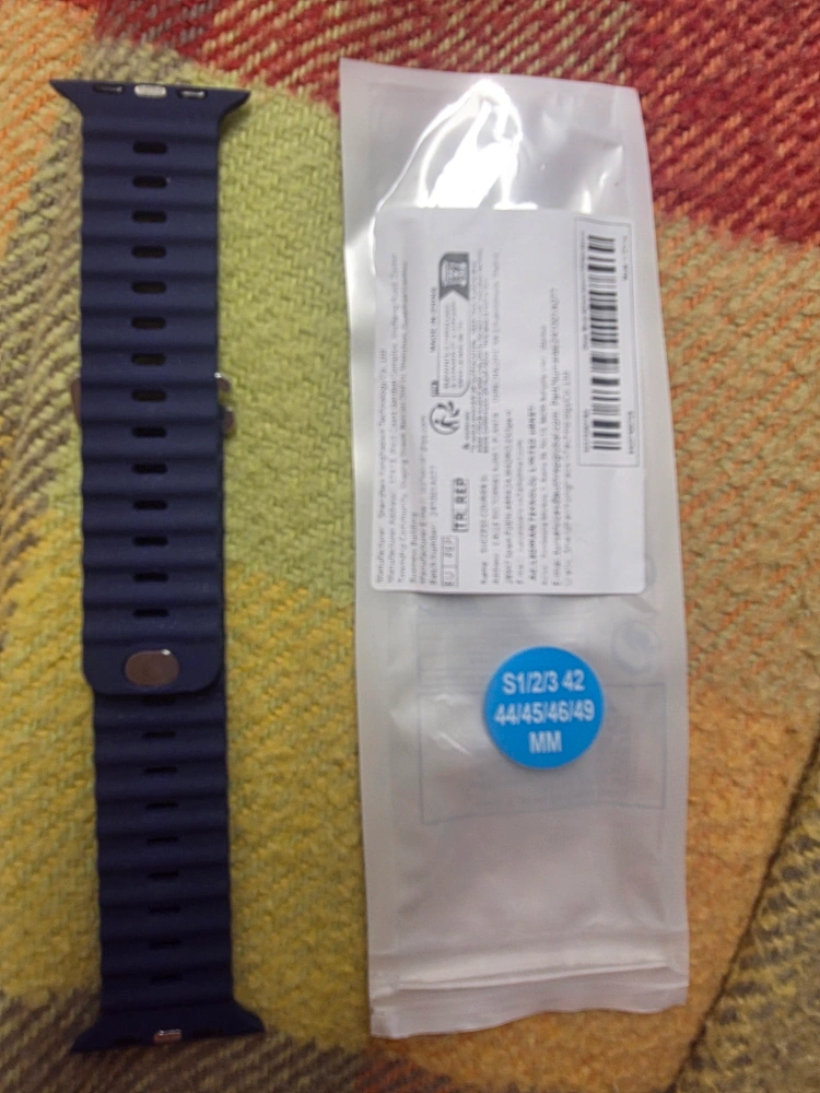 42Selling a brand new Apple Watch band! It's a stylish blue and fits sizes 44mm, 45mm, 46mm, and 49mm. It's still in its original packaging