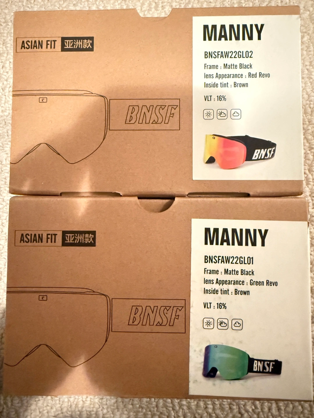 Selling two brand new pairs of BNSF Manny ski/snowboard goggles!