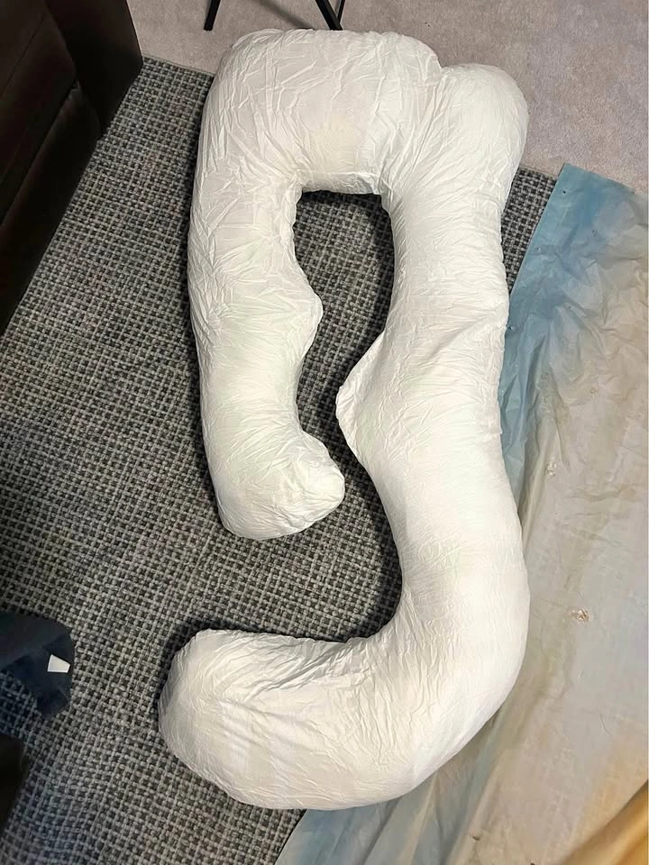 10This is a nearly new full body pillow, perfect for providing support during pregnancy or for anyone who enjoys extra comfort while sleeping. Its U-shape design cradles the entire body to relieve pressure and provide proper alignment. Here are some features of the pillow: * Full body support * U-shape design * Soft, plush filling * Removable and washable cover Looking to add a touch of whimsy to your sleep routine? This body pillow is your new best friend! It's so comfy, you'll feel like you're sleeping on a cloud made of marshmallows. Get ready for some serious snuggles! If the ad is up, it's available!