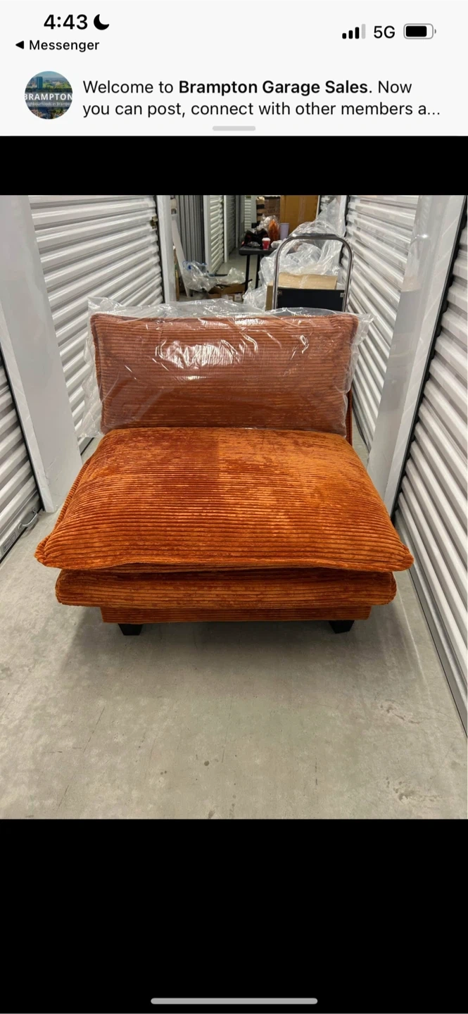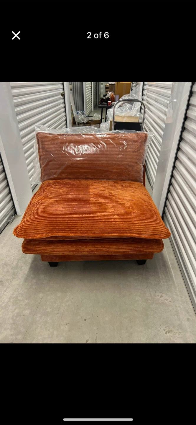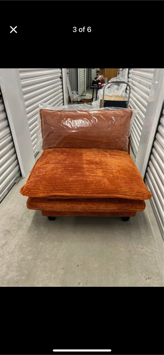 129Selling a comfy orange corduroy floor chair! It's in great condition and ready for a new home. Perfect for adding a pop of colour and a cozy spot to any room