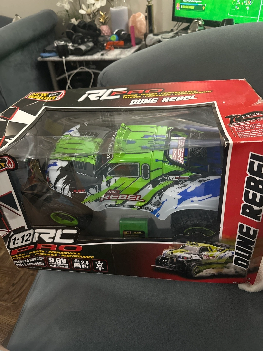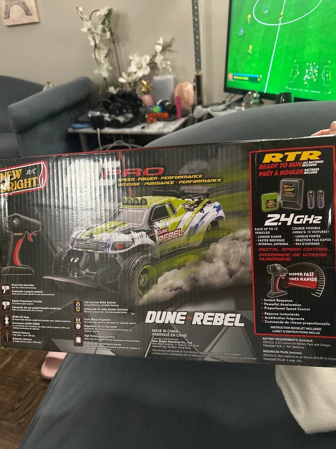 Selling a brand new, in-box New Bright Dune Rebel RC truck! It's a 1:12 scale model and ready to run (RTR). It includes all batteries. Enjoy super fast commande and response instantanee! Perfect for some off-road fun