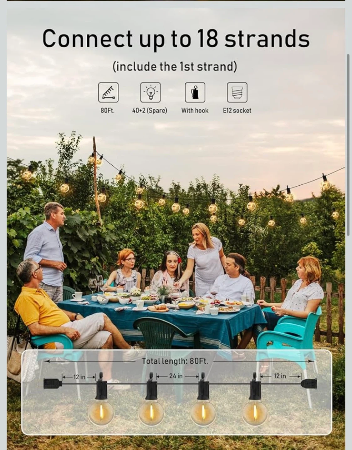 New Brightown LED Outdoor String Lights 80 Feet (40 bulbs) $40 (retail $70) Pickup in Whitby