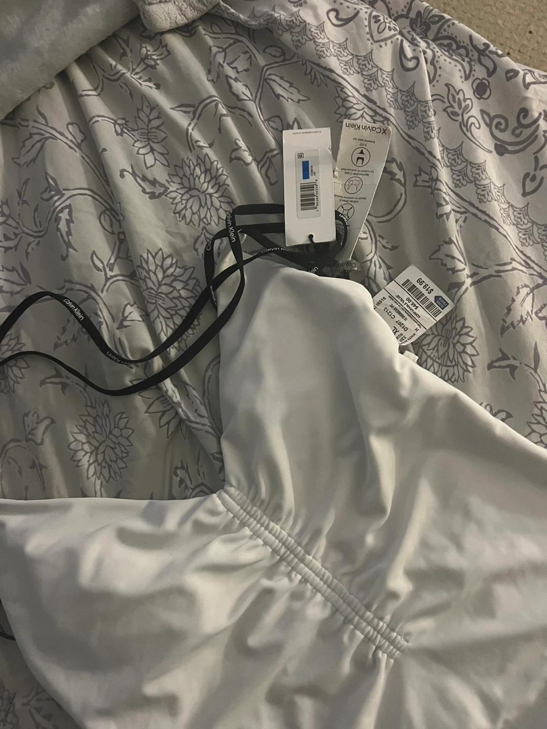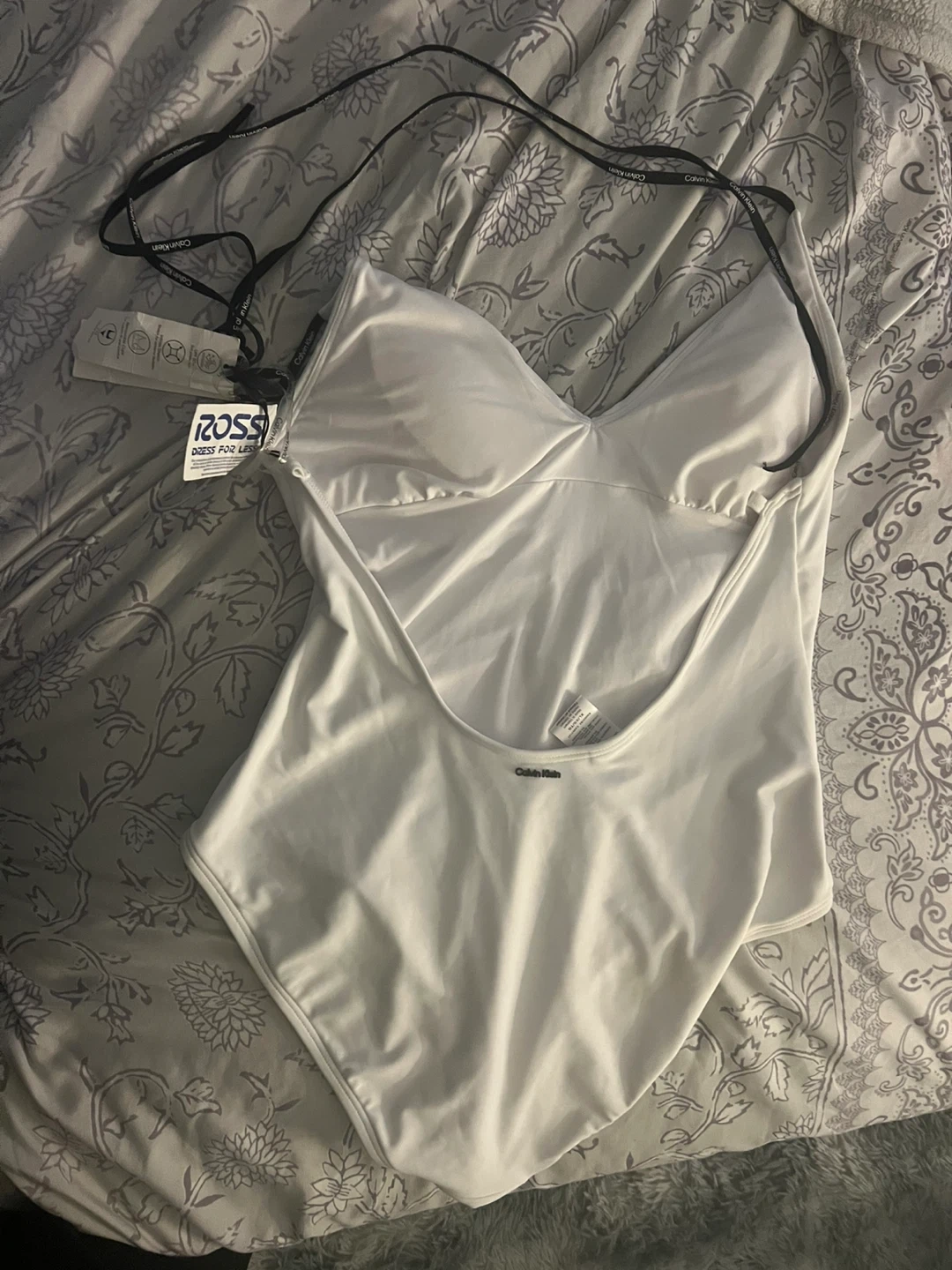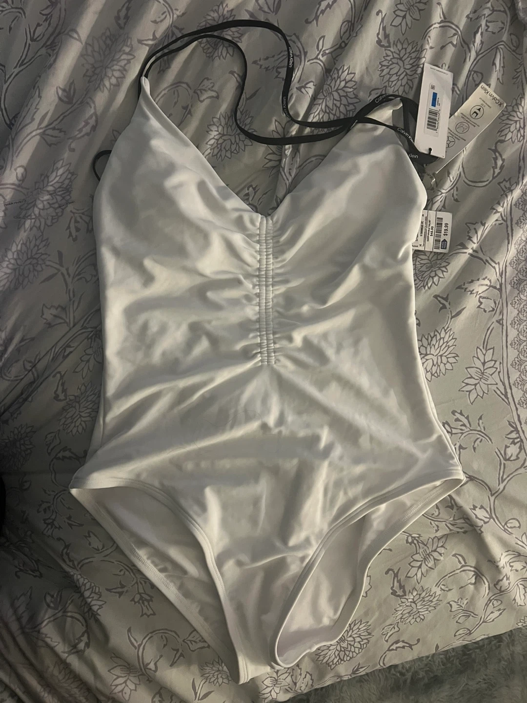 Selling a brand new Calvin Klein one-piece swimsuit! It's a beautiful white colour and still has the tags attached. Perfect for the summer season! Feel free to ask any questions.